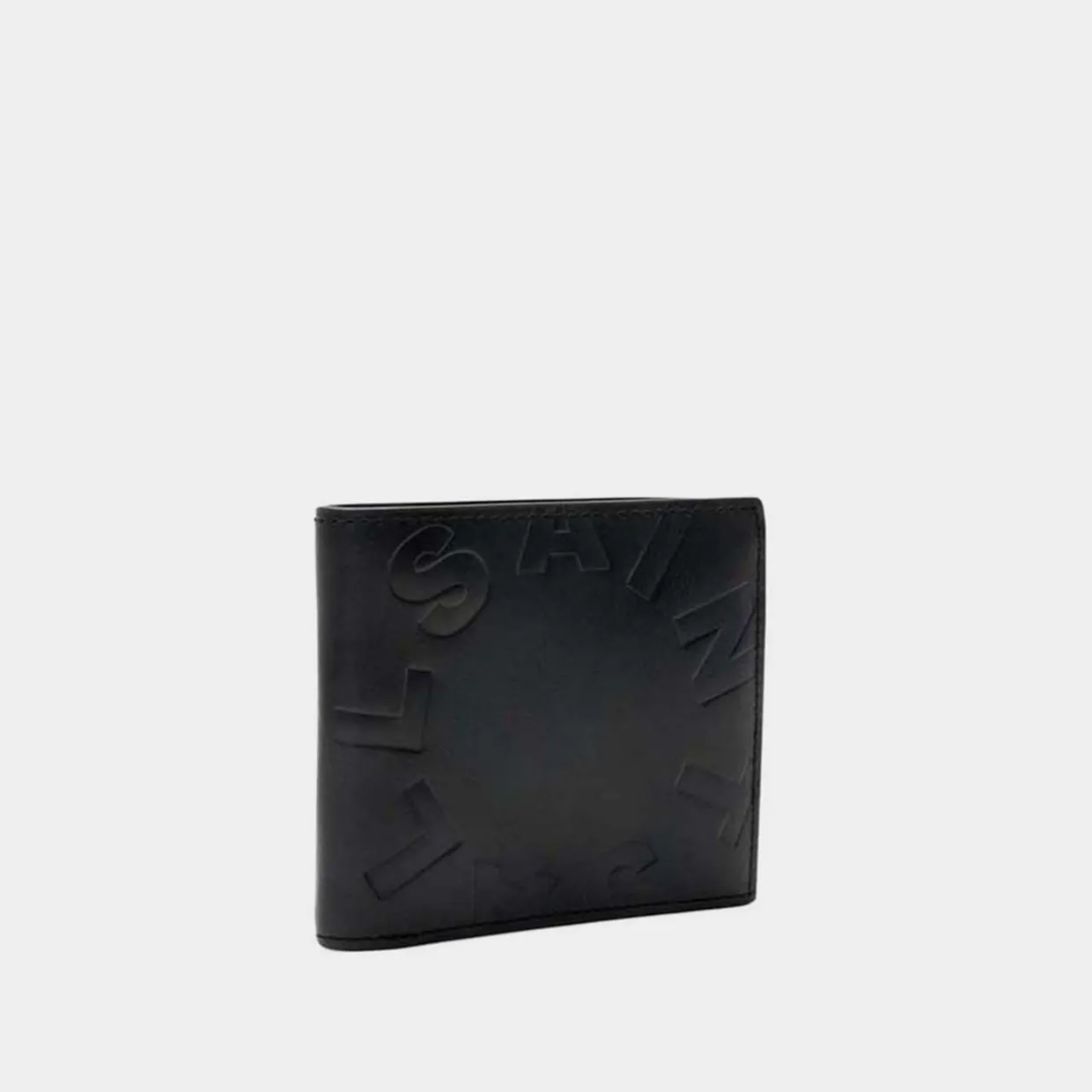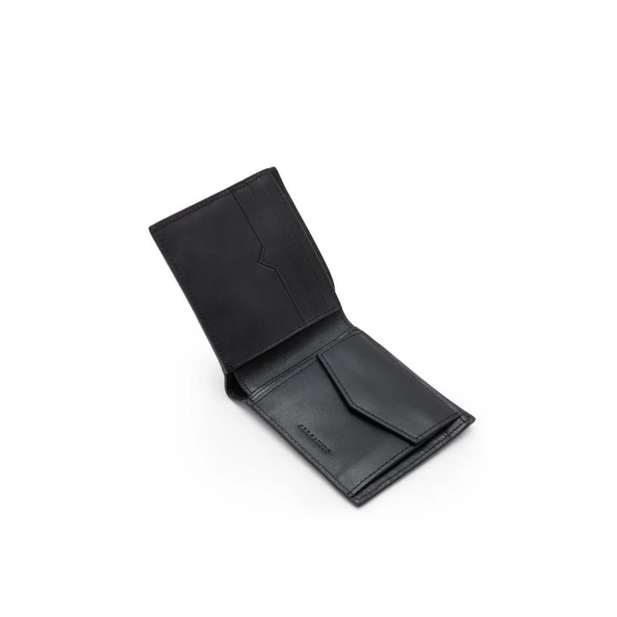 - Smooth finish, embossed logo, billfold style, snap button, coin slot, internal card slots