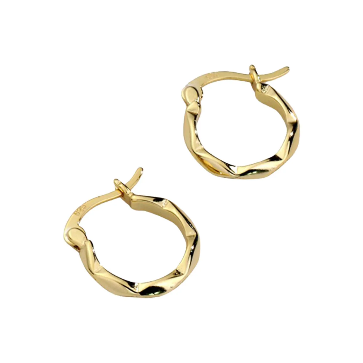 - Electrocoating applies a protective layer to jewellery via an electrically charged solution, ensuring durability, corrosion resistance, and consistent colouring, gold-toned hardware, twisted design, hoop style