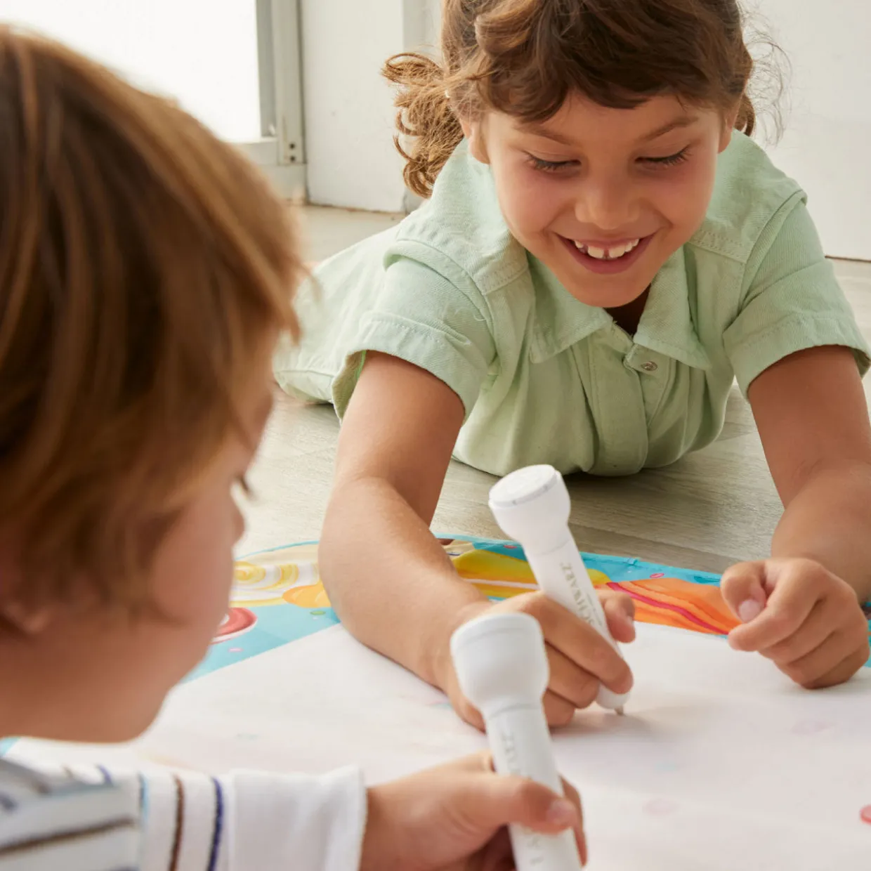 - Doodle mat changes colours when wet, use water instead of messy markers and ink