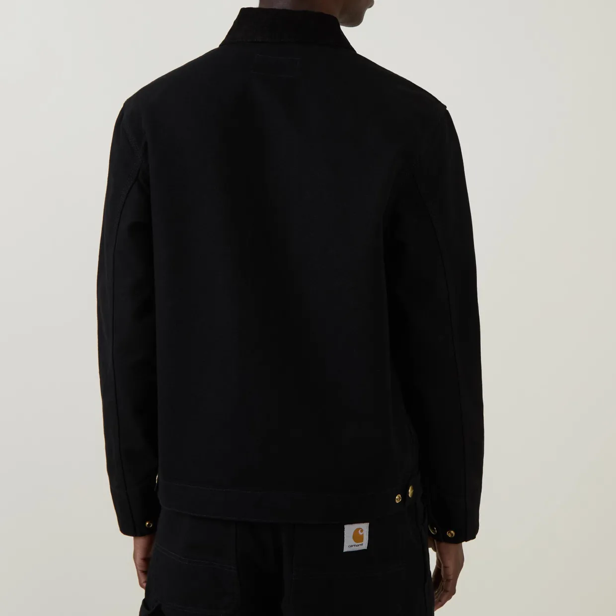 - Long sleeves, corduroy collar, dropped shoulders, zip through placket, three welt pockets, logo patch, adjustable hemline, adjustable cuffs, smooth denim finish