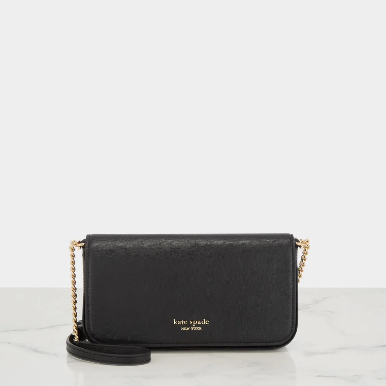 - Flap fastening with magnetic button closure, detachable chain strap, logo hardware, grained finish, gold-tone hardware