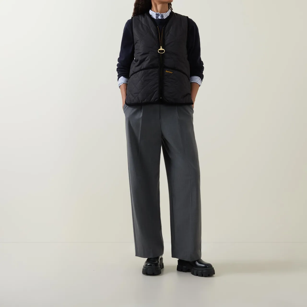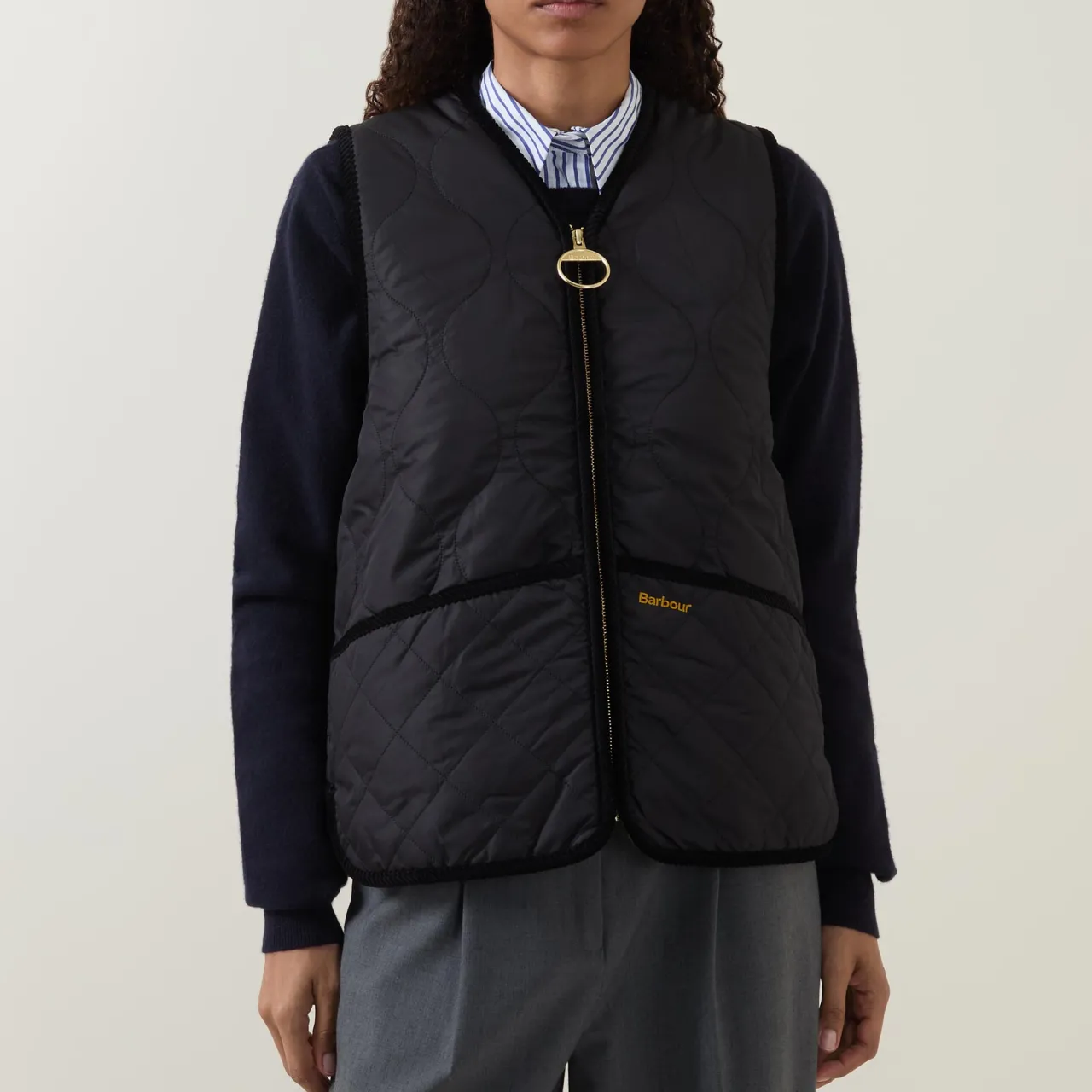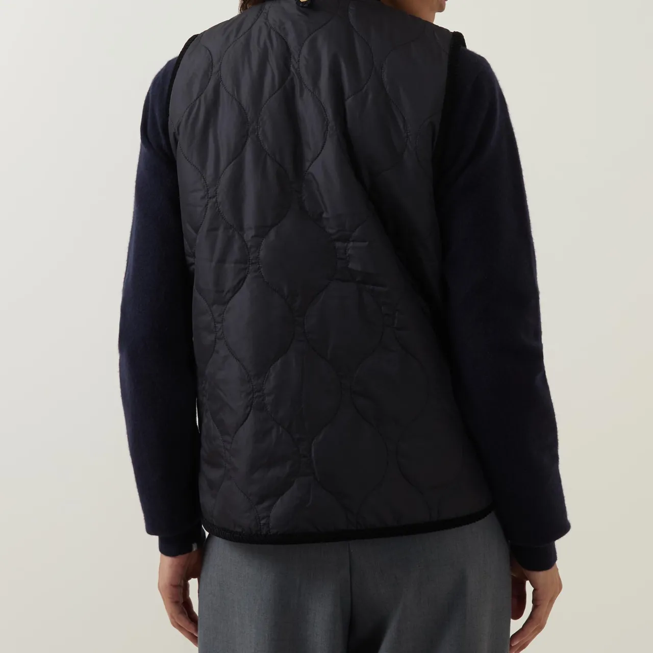 - V-neckline, sleeveless design, front branded zip fastening, two front slip pockets, straight hem, bound trims, embroidered logo detailing, onion-quilted finish