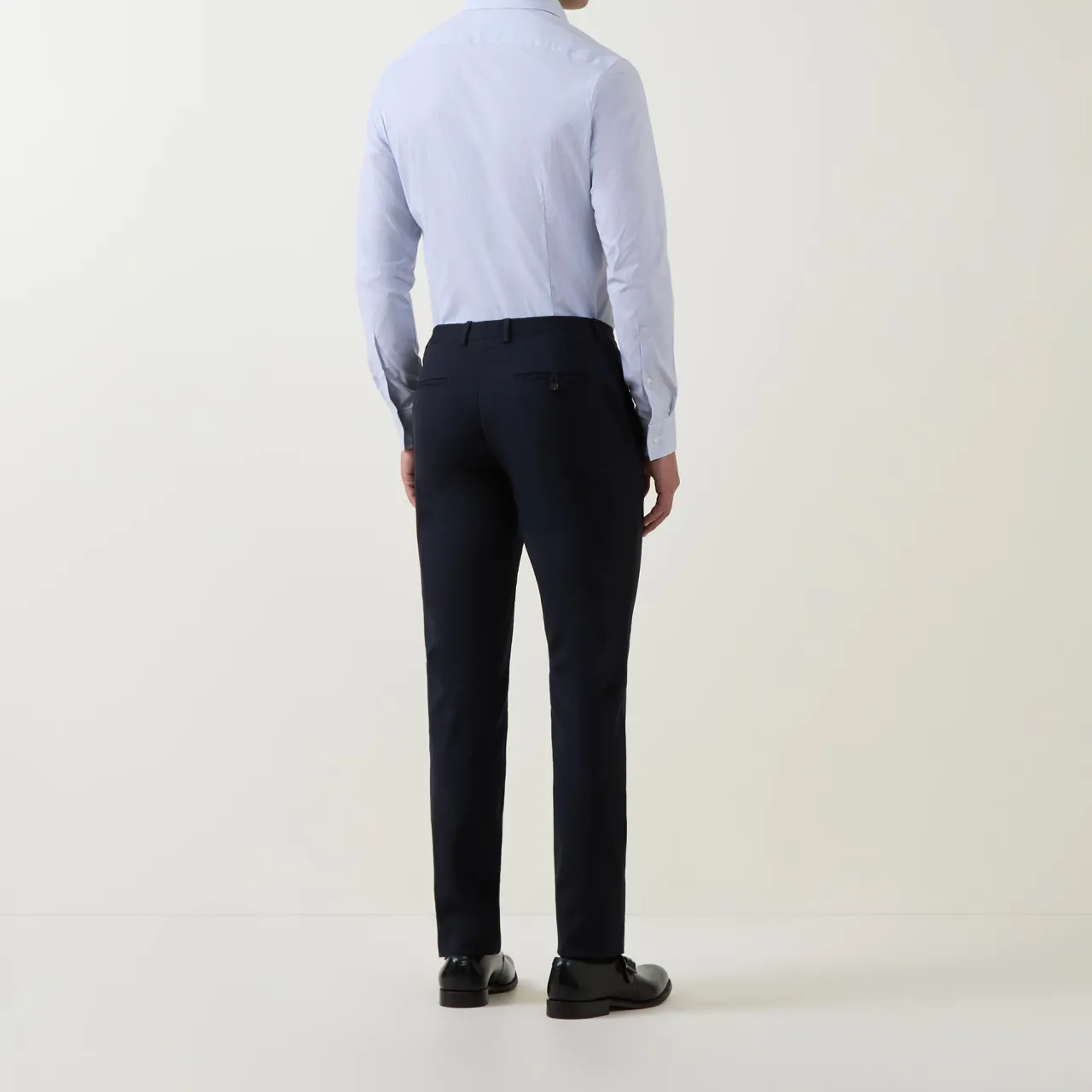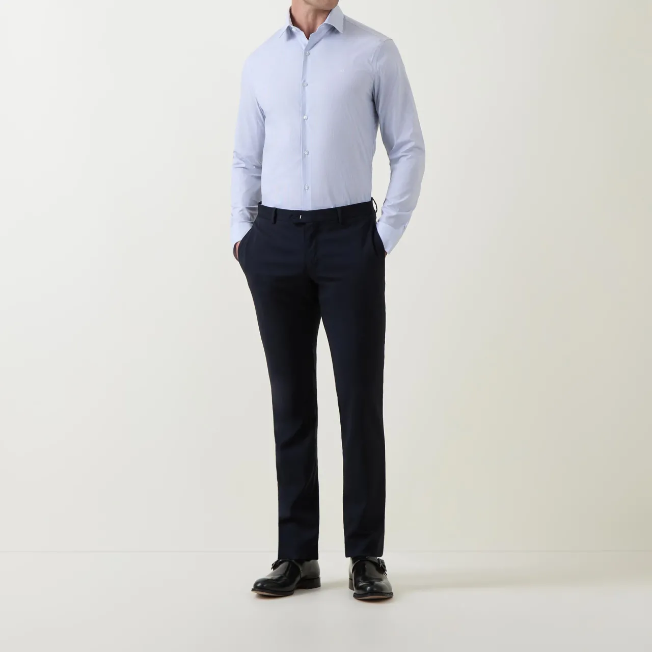 - Long sleeves, pointed collar, front button fastenings, CK logo embroidery, pinstripe pattern, darting to the back, single-button cuffs, curved hemline, smooth fabric