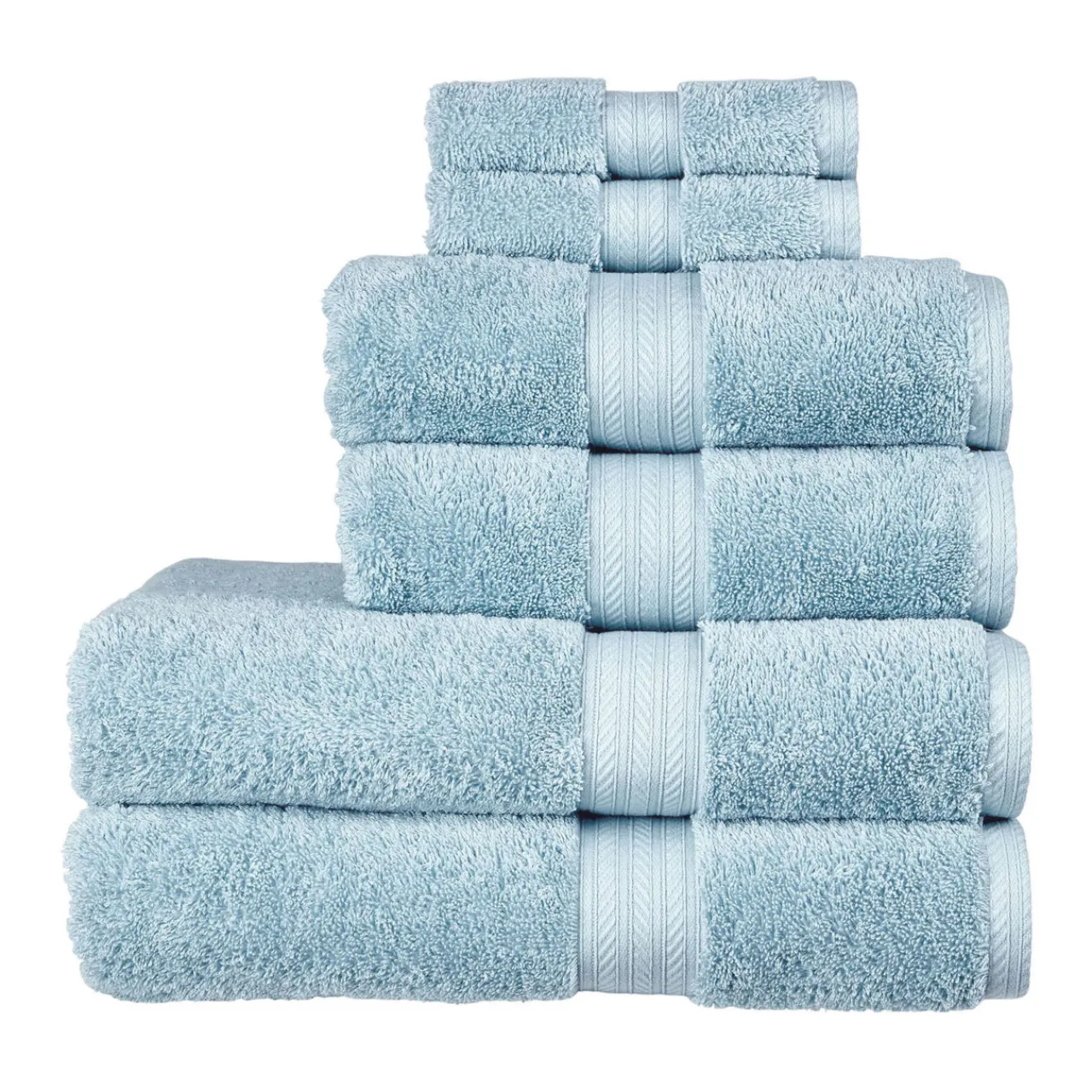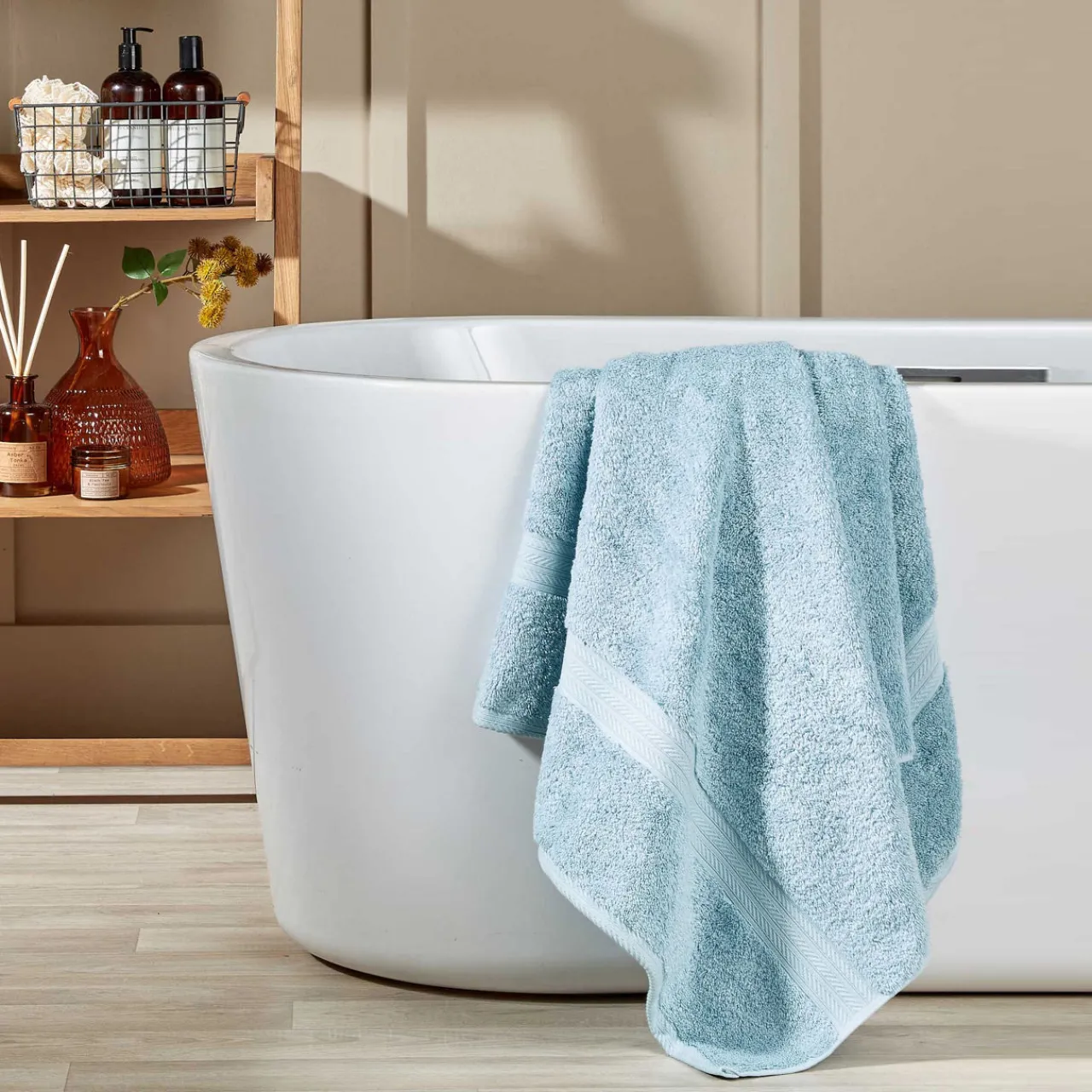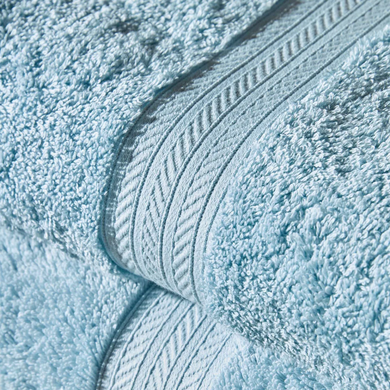 - Woven terry cotton, long loop, original twill header and border, herringbone on the reverse, weighted feel, super absorbency