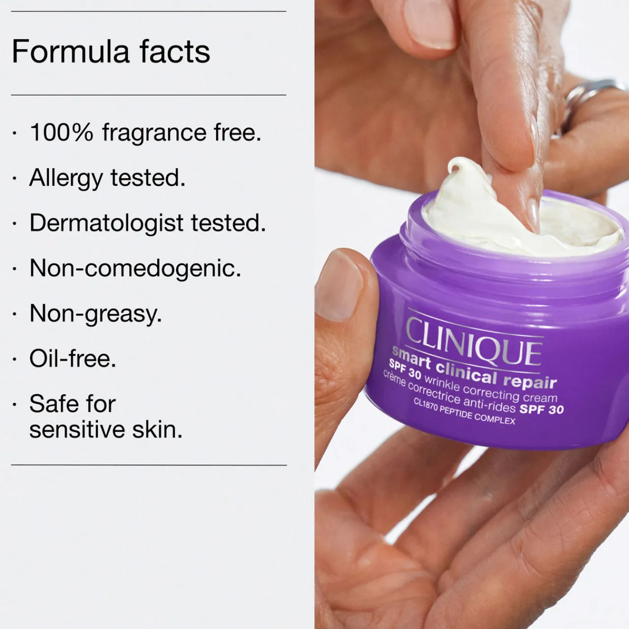 - Formula Facts: Dermatologist tested, Safe for sensitive skin, Oil-free, Non-greasy, Non-comedogenic, Fragrance-free, Allergy tested