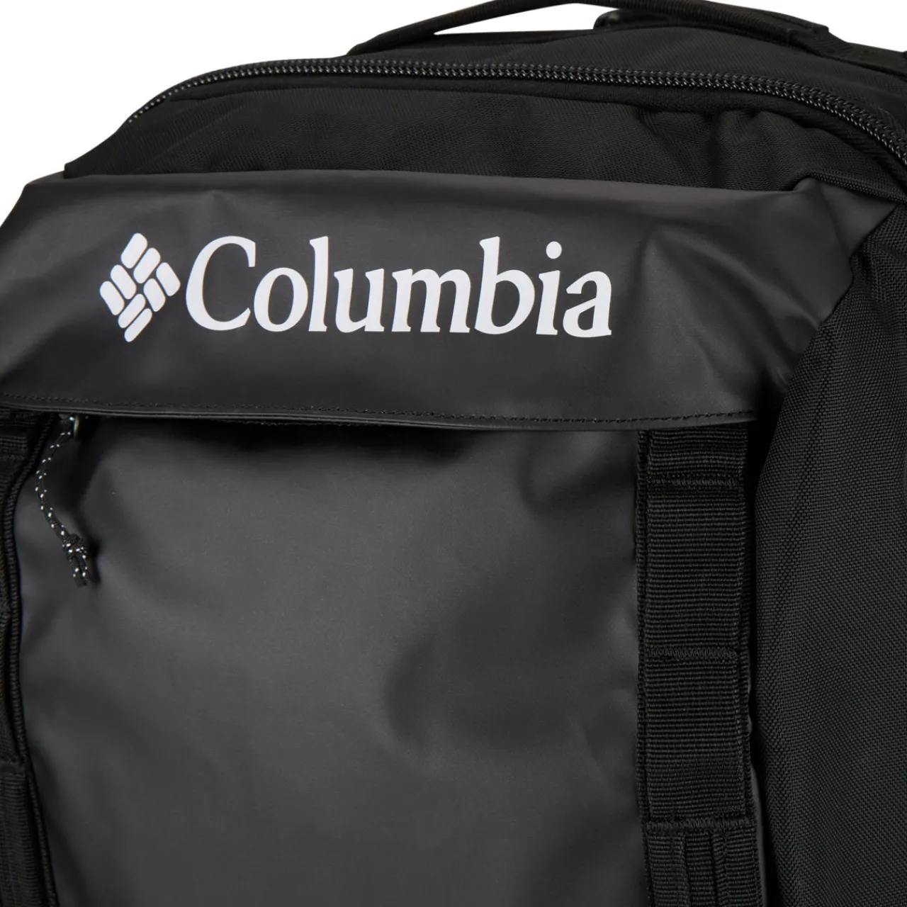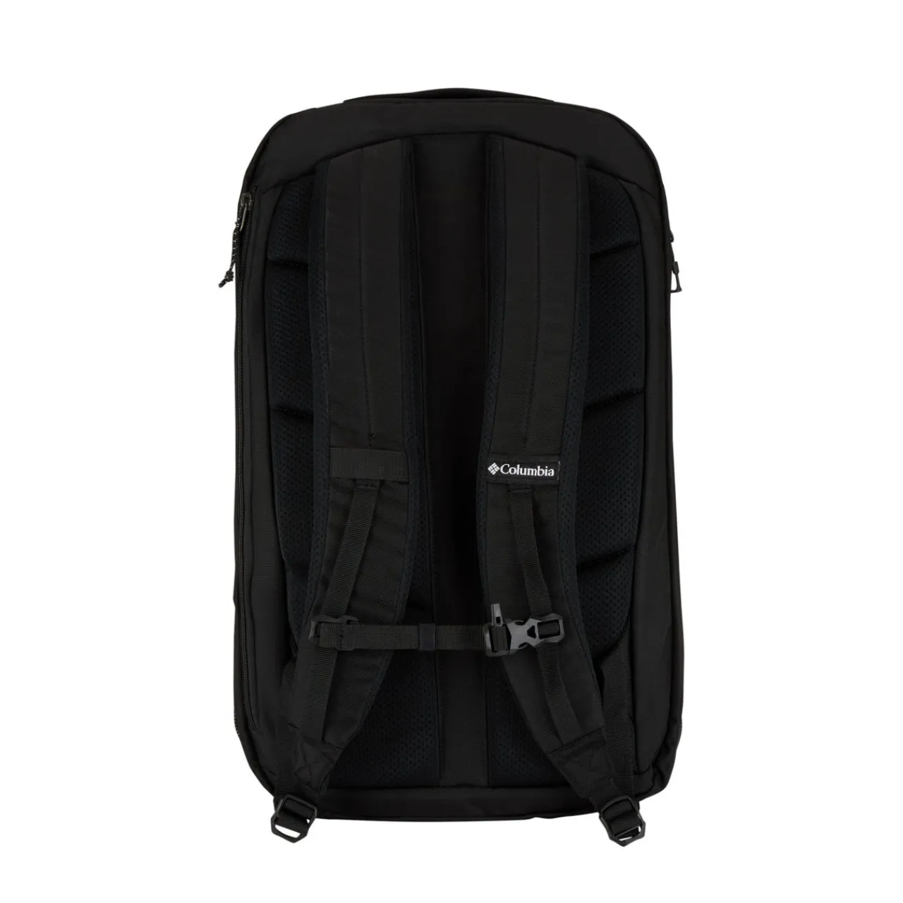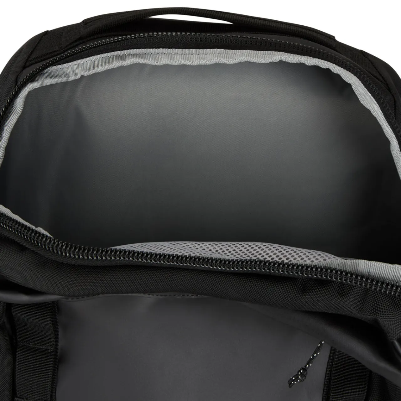 - Top carry handle, adjustable padded back straps, adjustable sternum strap with rescue whistle, logo details, external laptop sleeve, internal zippered mesh compartments, weatherproof TPU coating