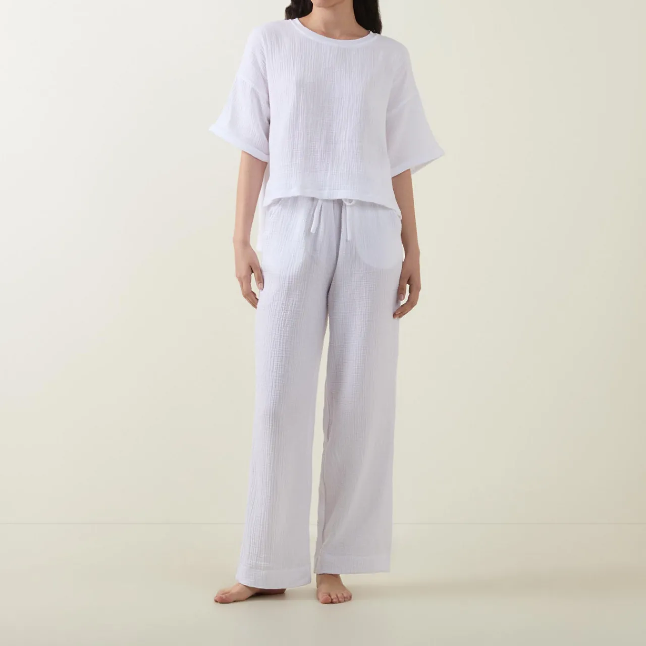 - Elasticated waistband, adjustable drawstring fastening, two side in-seam pockets, textured finish
