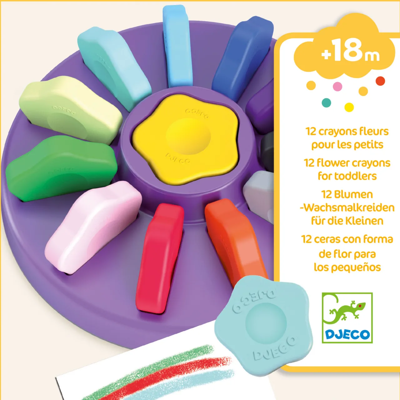 - 12 flower crayons, flower-shaped, first crayons for tiny hands, chunky, easy to hold, non-stain, washable, develops creativity and imagination