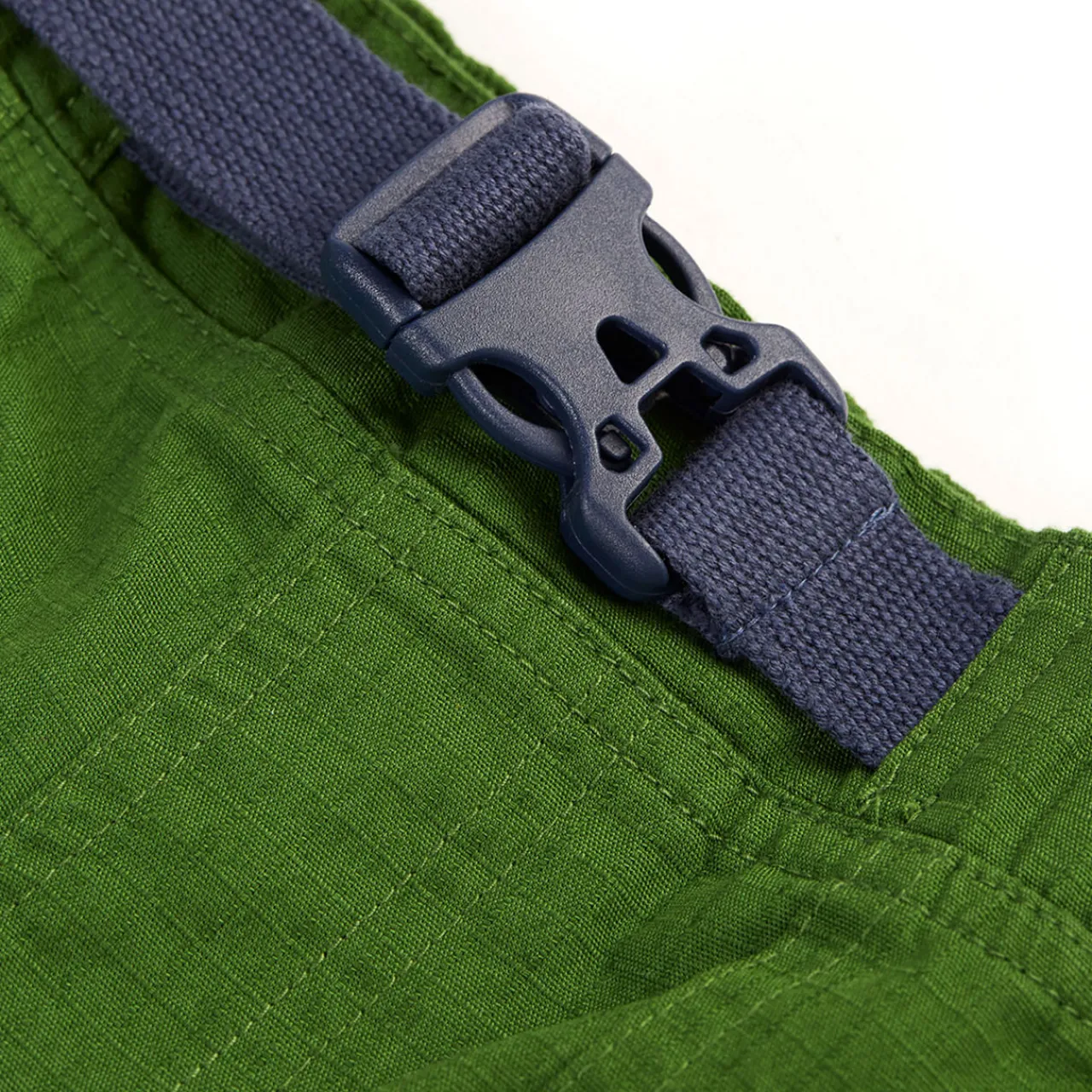 - Straight-leg, integrated buckle fastening, elasticated waistband, two front patch pockets, two rear patch pockets, non-fixed leg cuffs