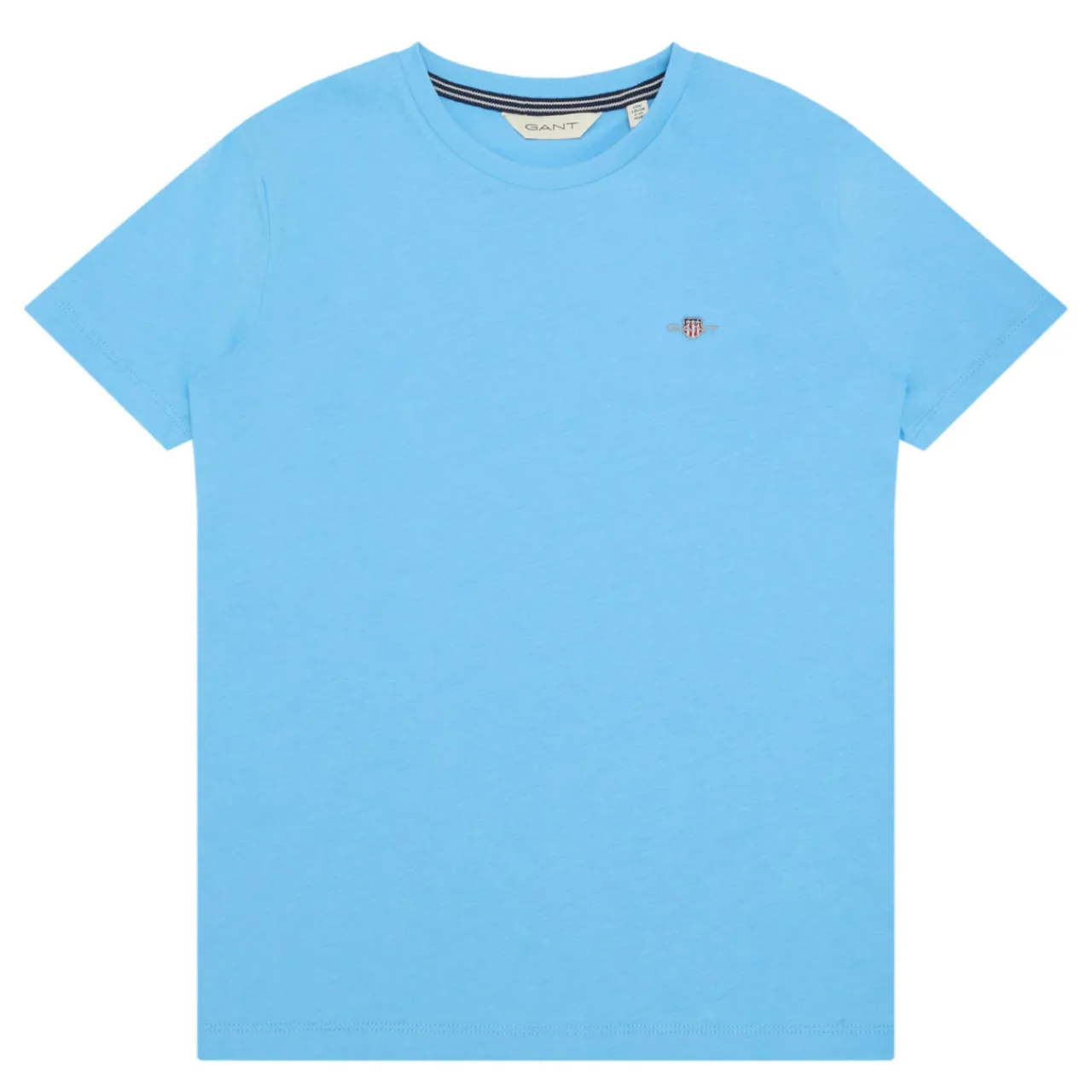 - Short sleeves, round neckline, shield logo embroidery, tonal stitching, straight hemline, smooth fabric