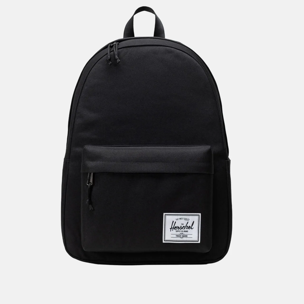 - EcoSystem™ 600D fabric, tonal stripe EcoSystem™ Liner, floating sleeve fits a 15/16-inch laptop, top zip fastening, prusik cord pulls, adjustable padded shoulder straps, carry loop, brand logo patch, water bottle pocket, front zipped pocket, Put Yourself Out There™ internal label, Herschel Supply stripe DNA tab