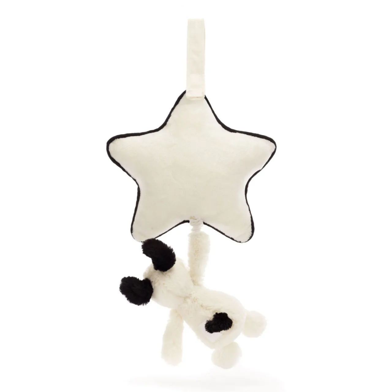 The Bashful Black & Cream Puppy Musical Pull from Jellycat is a soothing gift to help babies drift off. The brand’s most loved pup has gorgeous cream fur with liquorice-coloured patches and holds on tight to a concertina pull. Gently pull Puppy and an original Jellycat lullaby will play from the stylishly monochrome trimmed star.