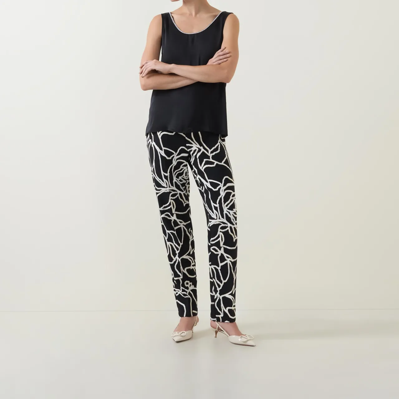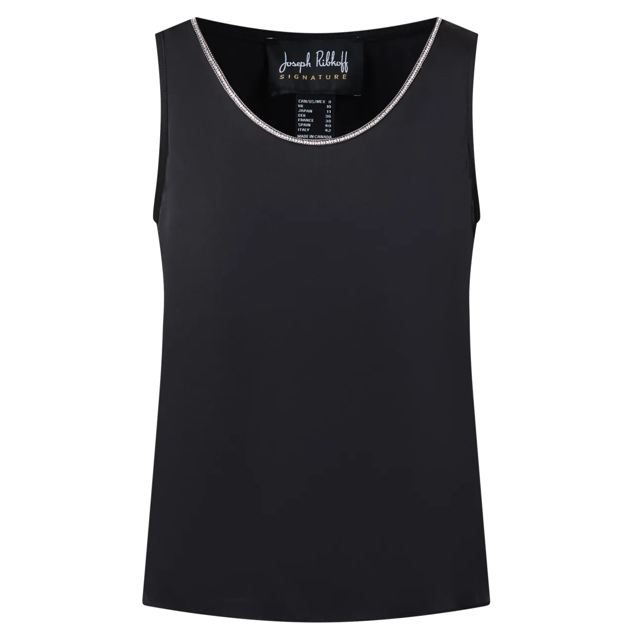 - Scoop neckline, wide straps, sleeveless design, split hem, embellished trim detailing, satin finish