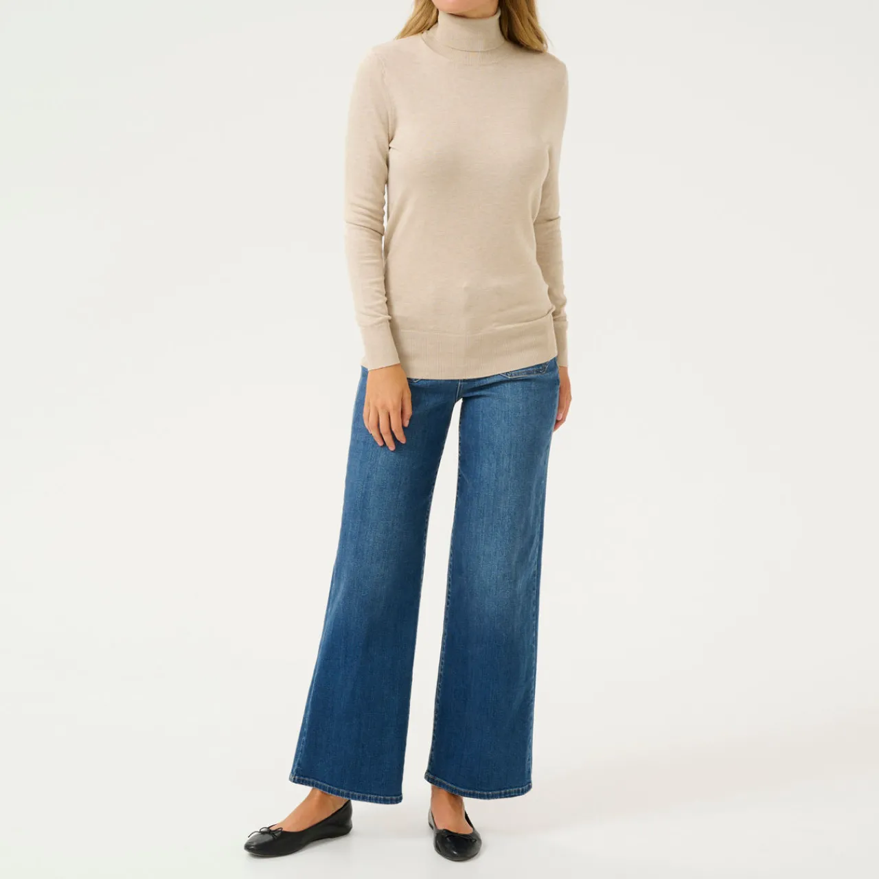 - Roll turtleneck, long sleeves, ribbed trims, soft knit fabric