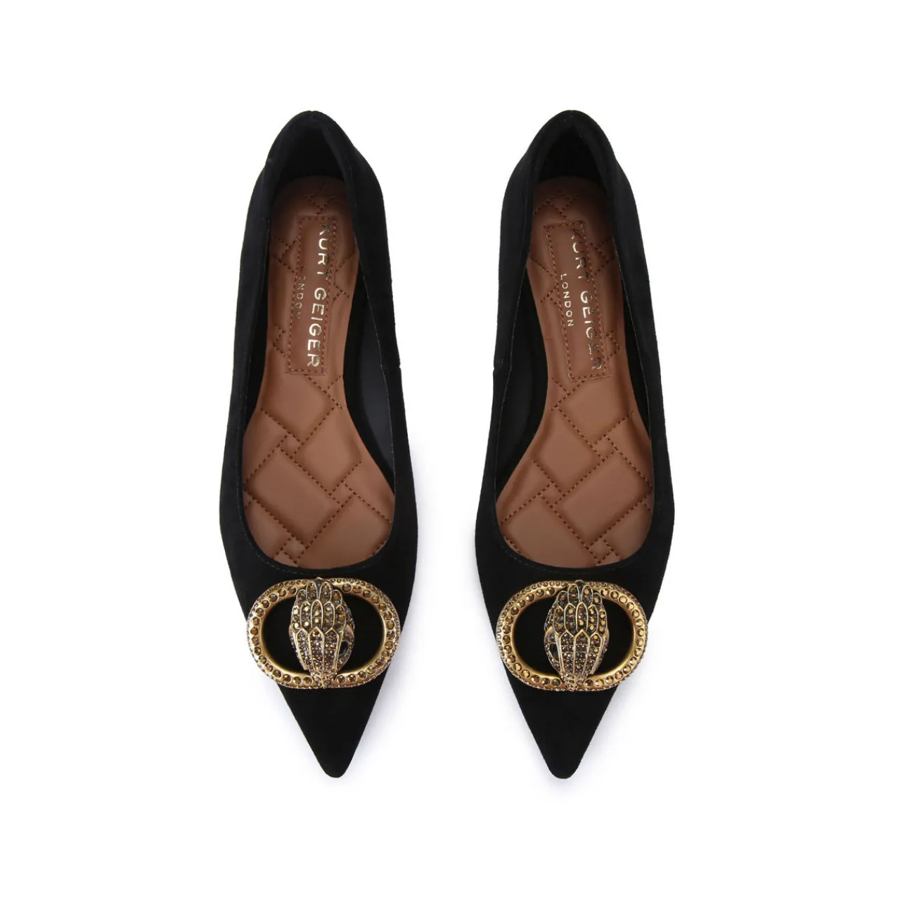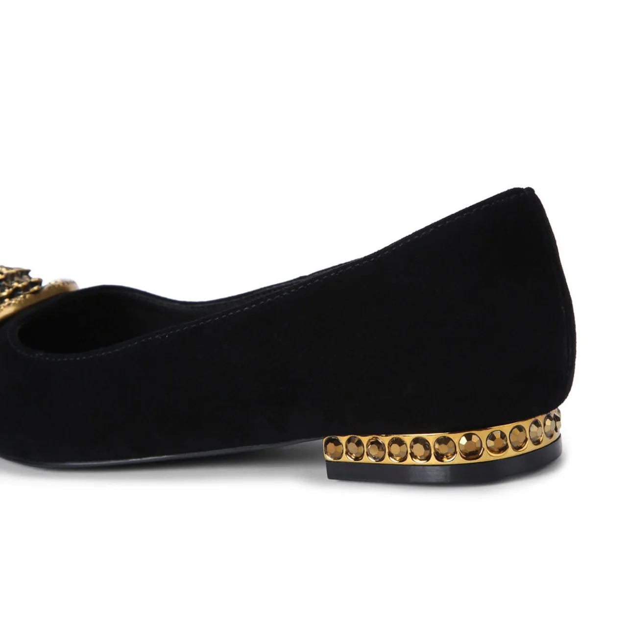 - Pointed toe, embellished eagle head buckles, slip on, embellished flat heel