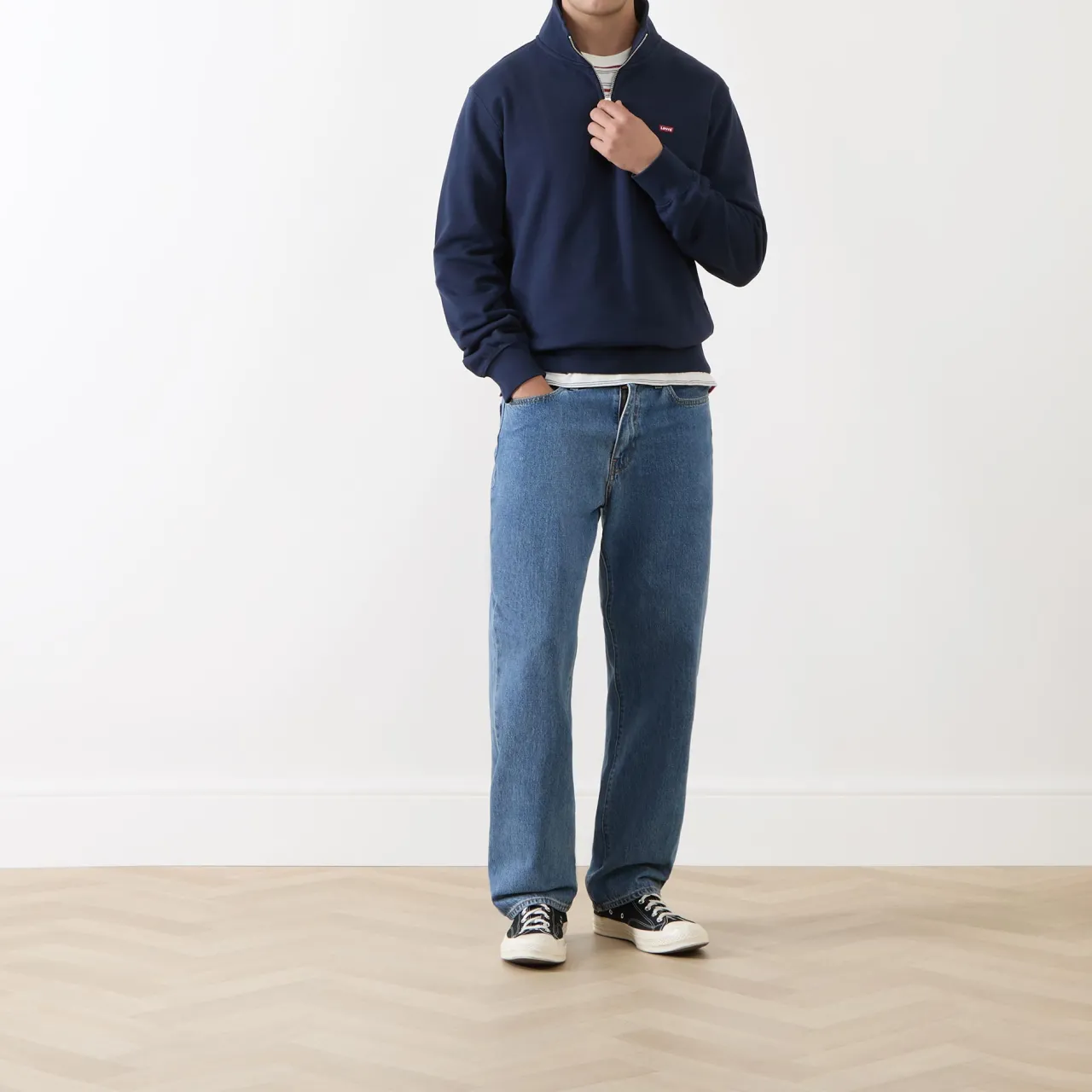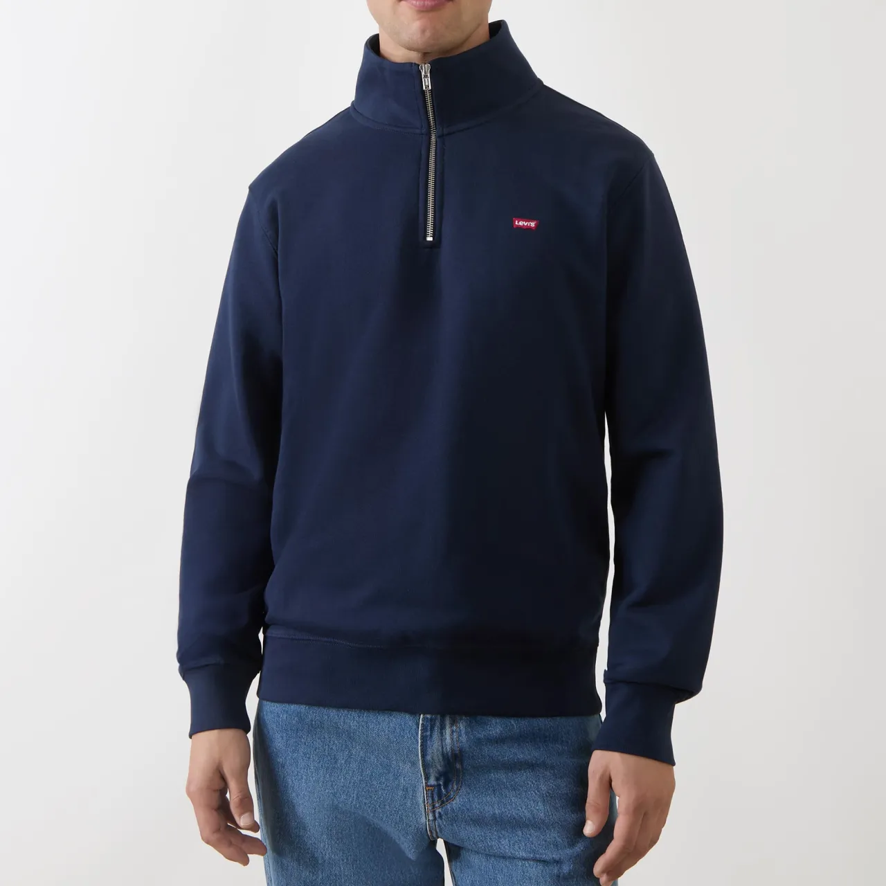 - Long sleeves, stand-up collar, quarter zip-fastening placket, signature red logo patch, elasticated hemline, stretch cuffs, smooth fabric