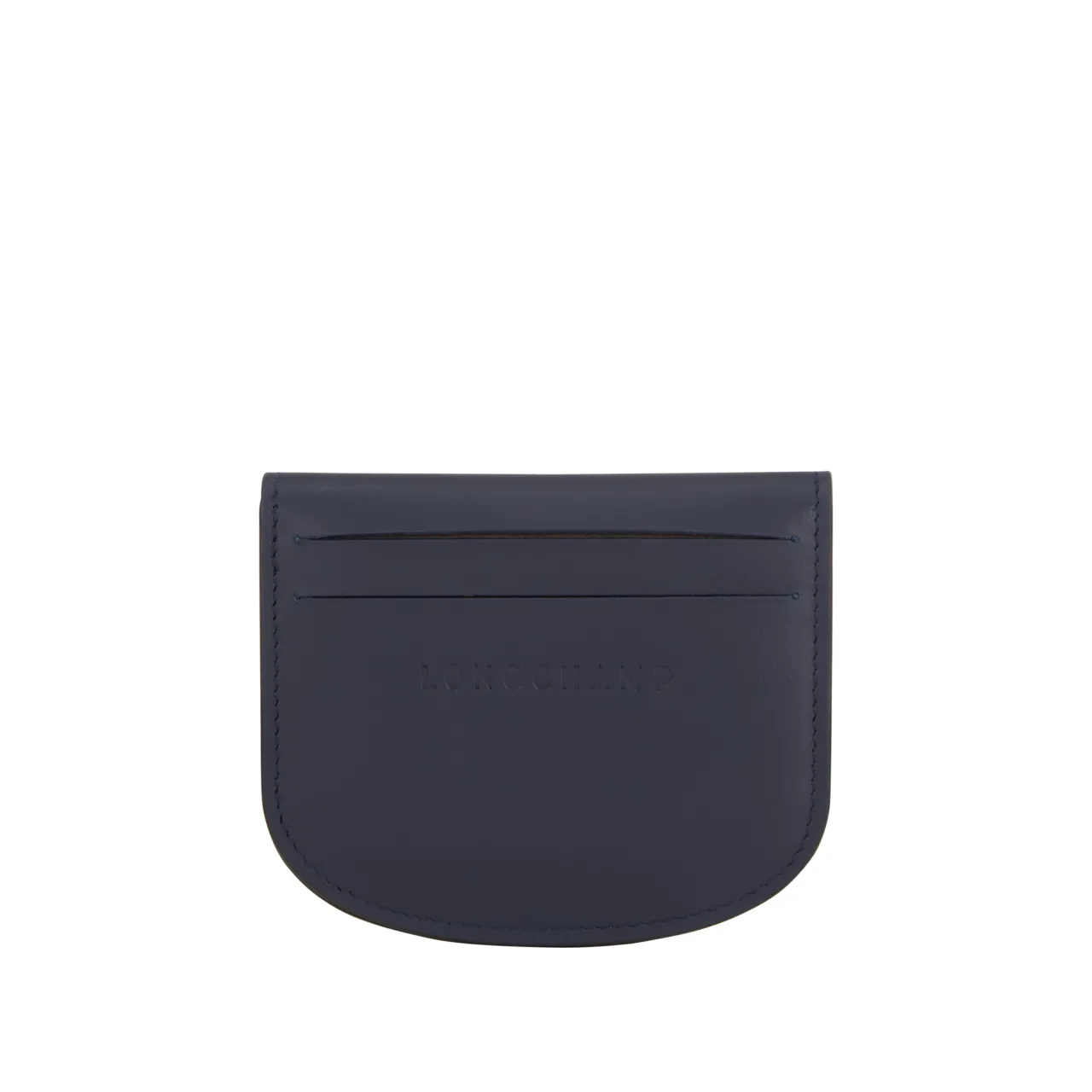 - Curved shape, gold-tone hardware, smooth finish, snap button fastening, billfold style, two exterior card slots, four interior card slots, logo details