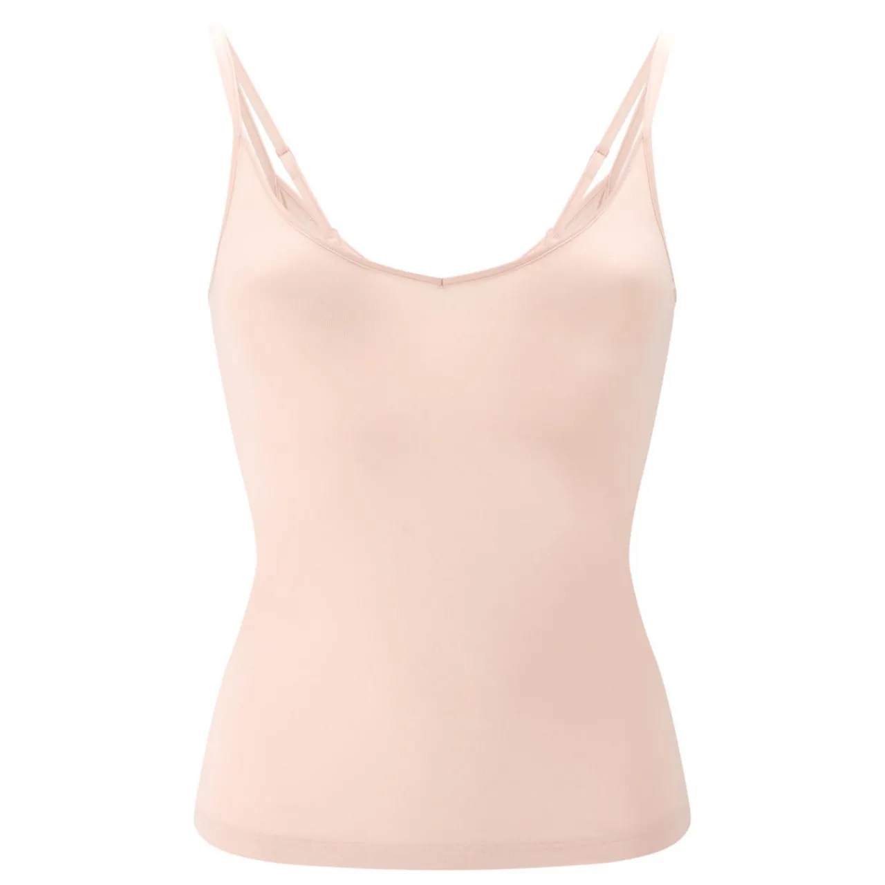 - V-neckline, thin adjustable straps, straight hemline, fine ribbed structure, flat seams