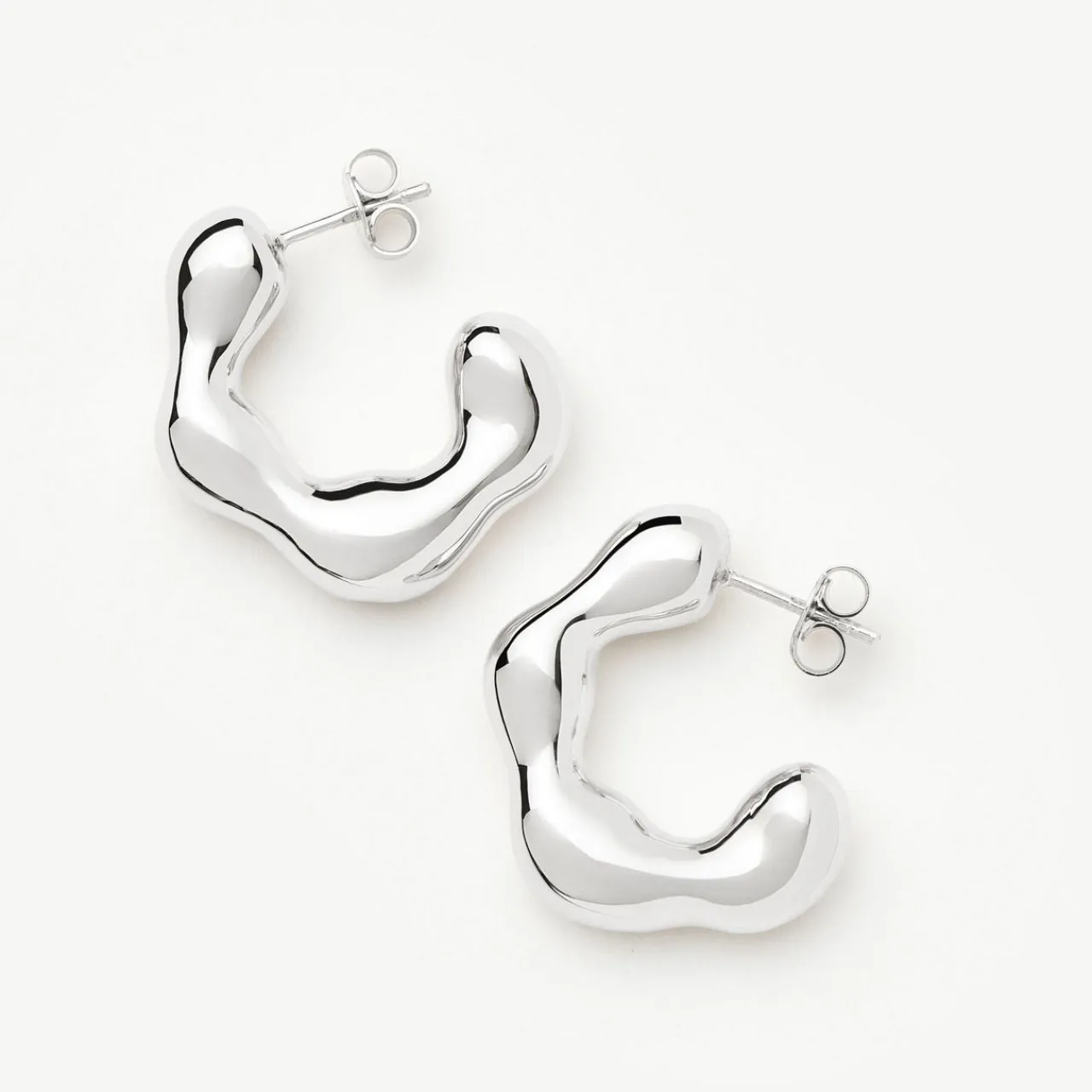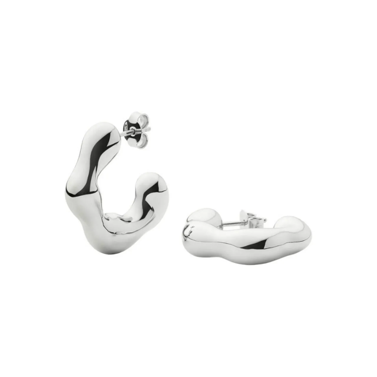 - Molten hoops, voluminous puffed design, lightweight, stackable design, silver-tone finish, collaboration with Eny Lee Parker