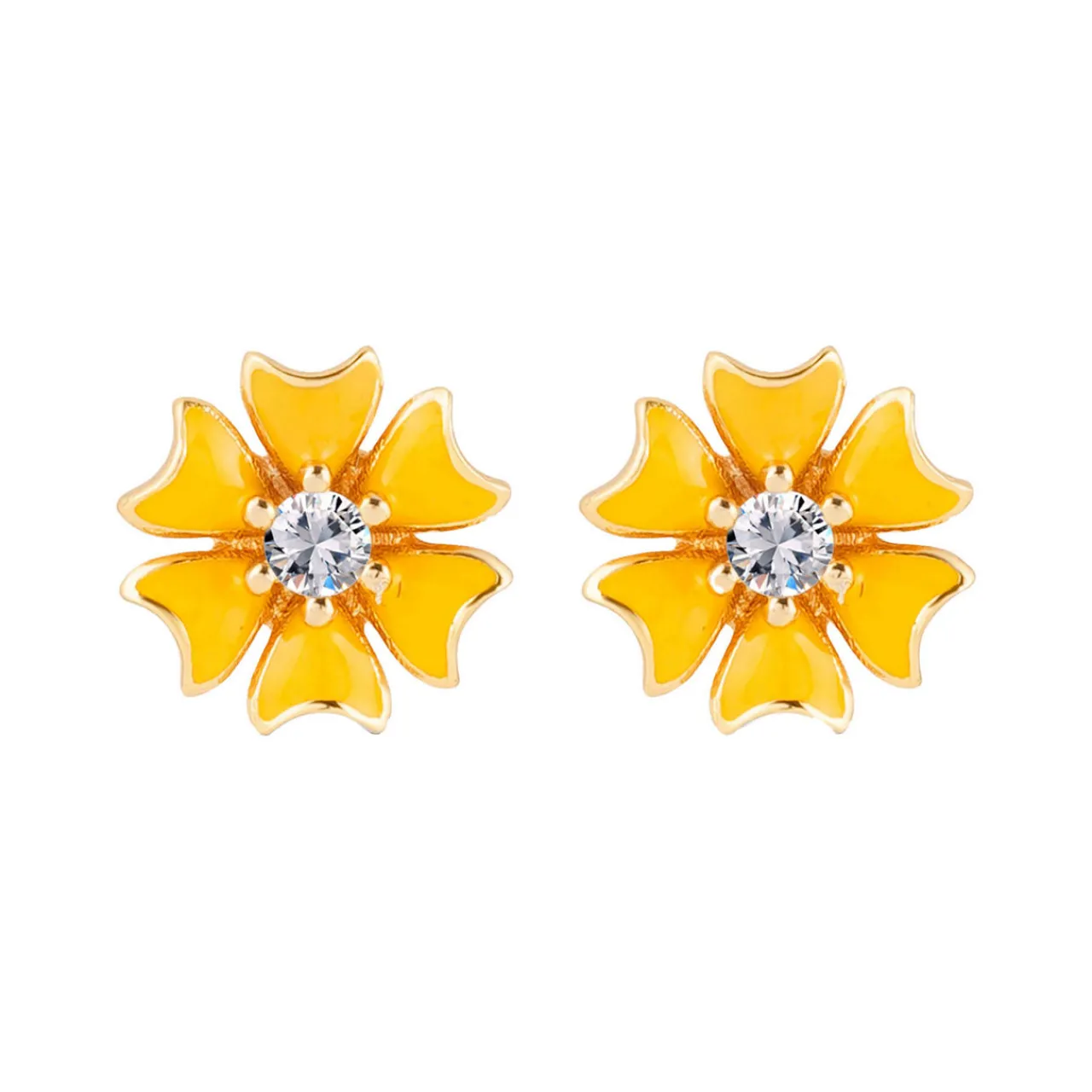 - Floral-shaped design, yellow enamel detailing, butterfly post fastenings, gold-tone finish, presented in a branded gift box