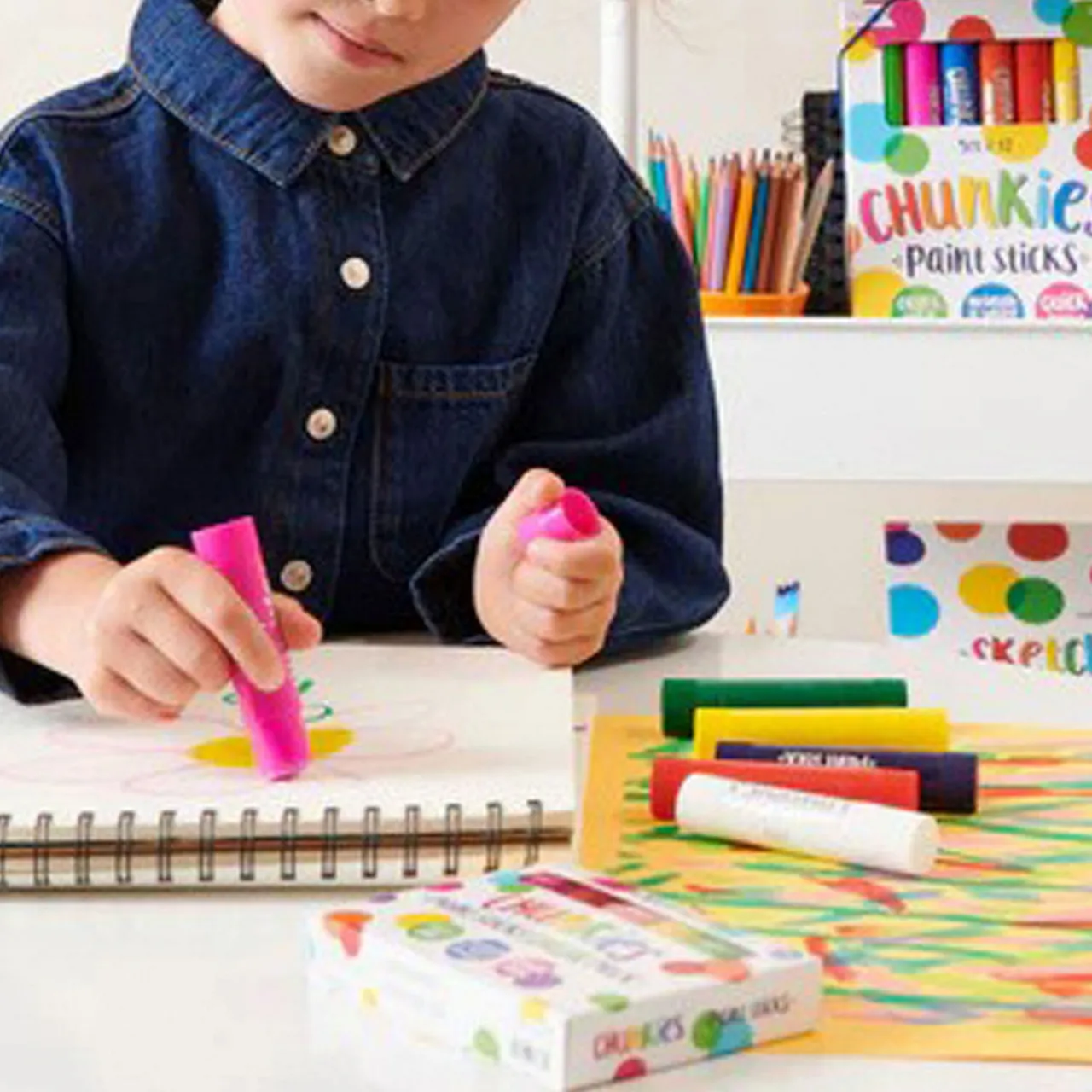 - Set of six, twist-up design, thick barrelled casing, easy for little hands to hold, no brush or water needed, quick-drying, smudge-proof, assorted colours