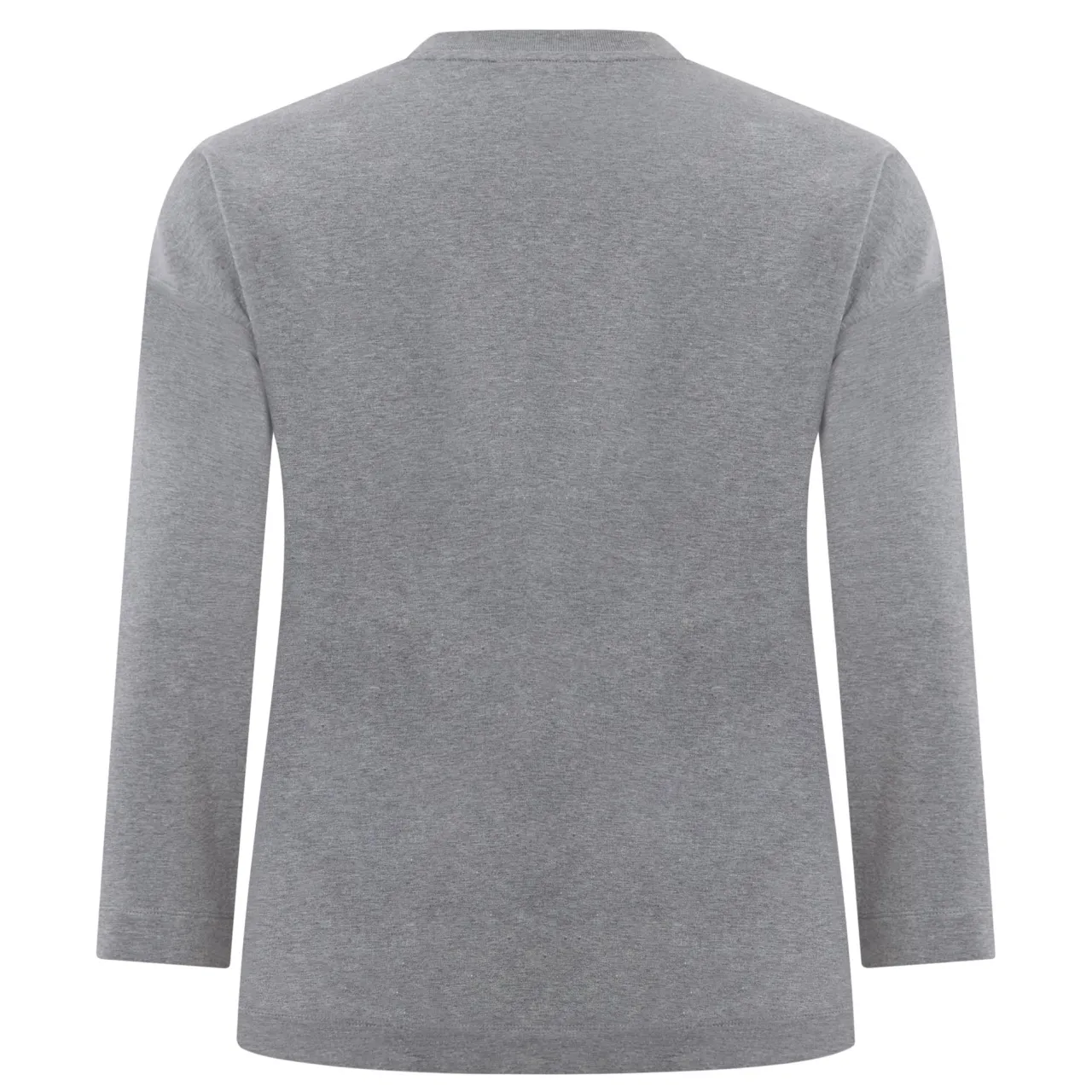 - Round neckline, long sleeves, dropped shoulders, straight hemline with split side seams, rhinestone detailing