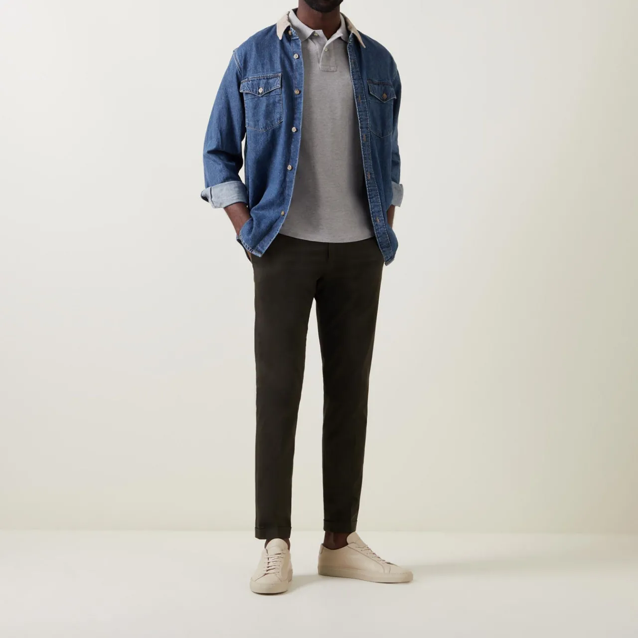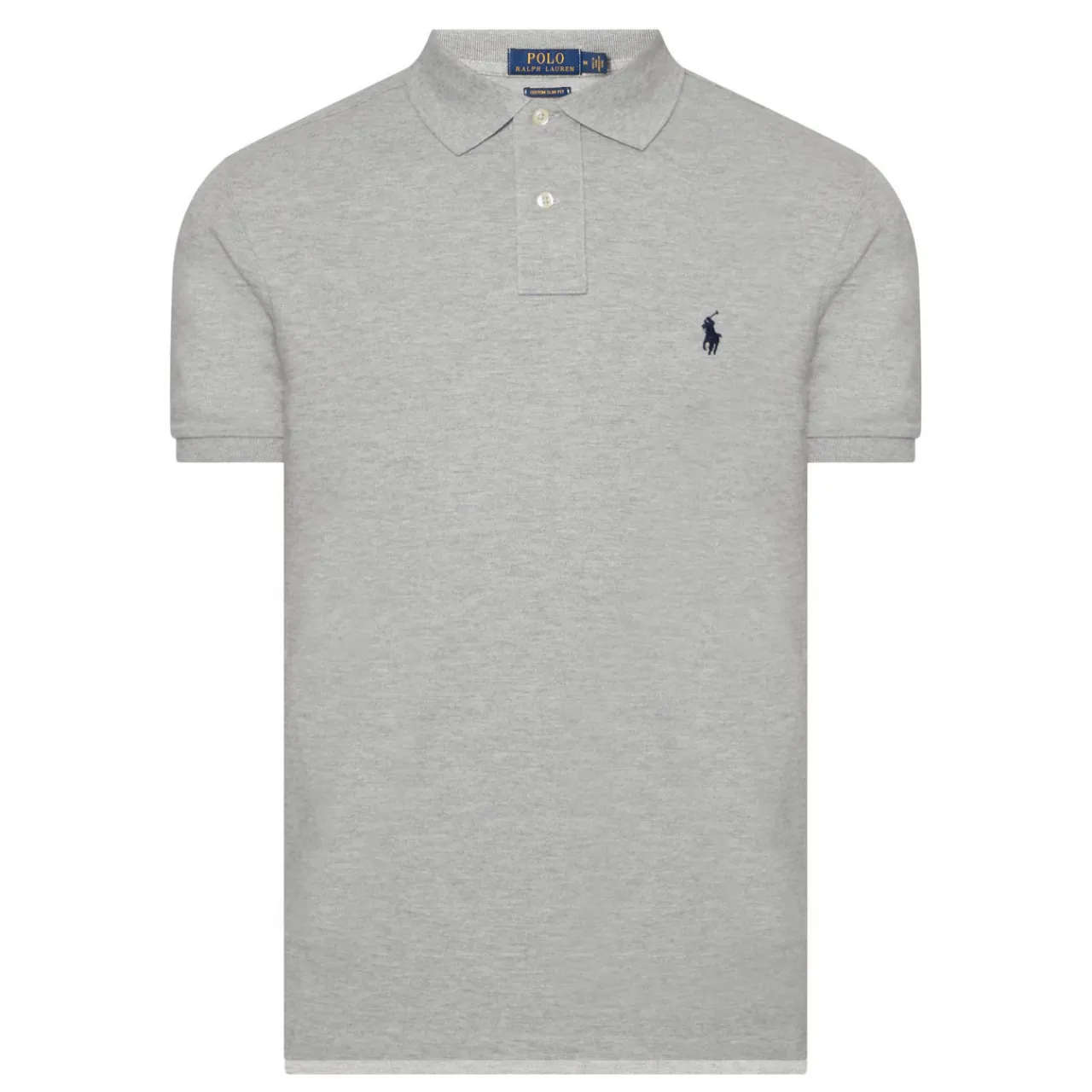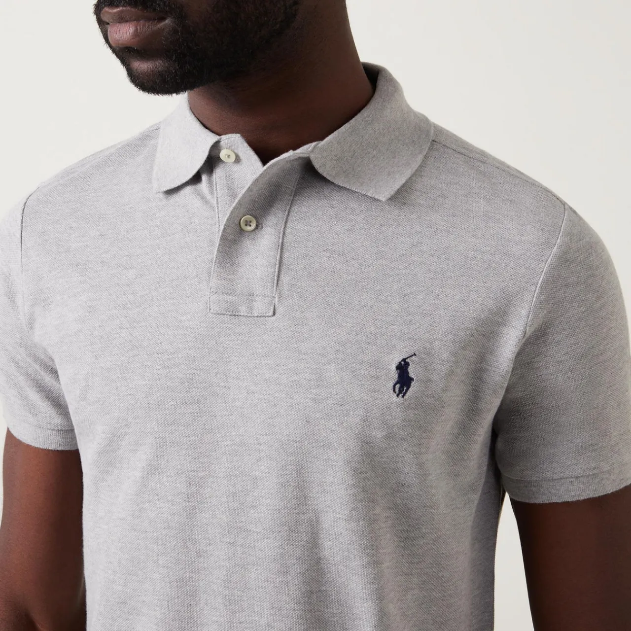 - Short sleeves, side vents, ribbed trims, classic collar, pony embroidery, button fastenings.