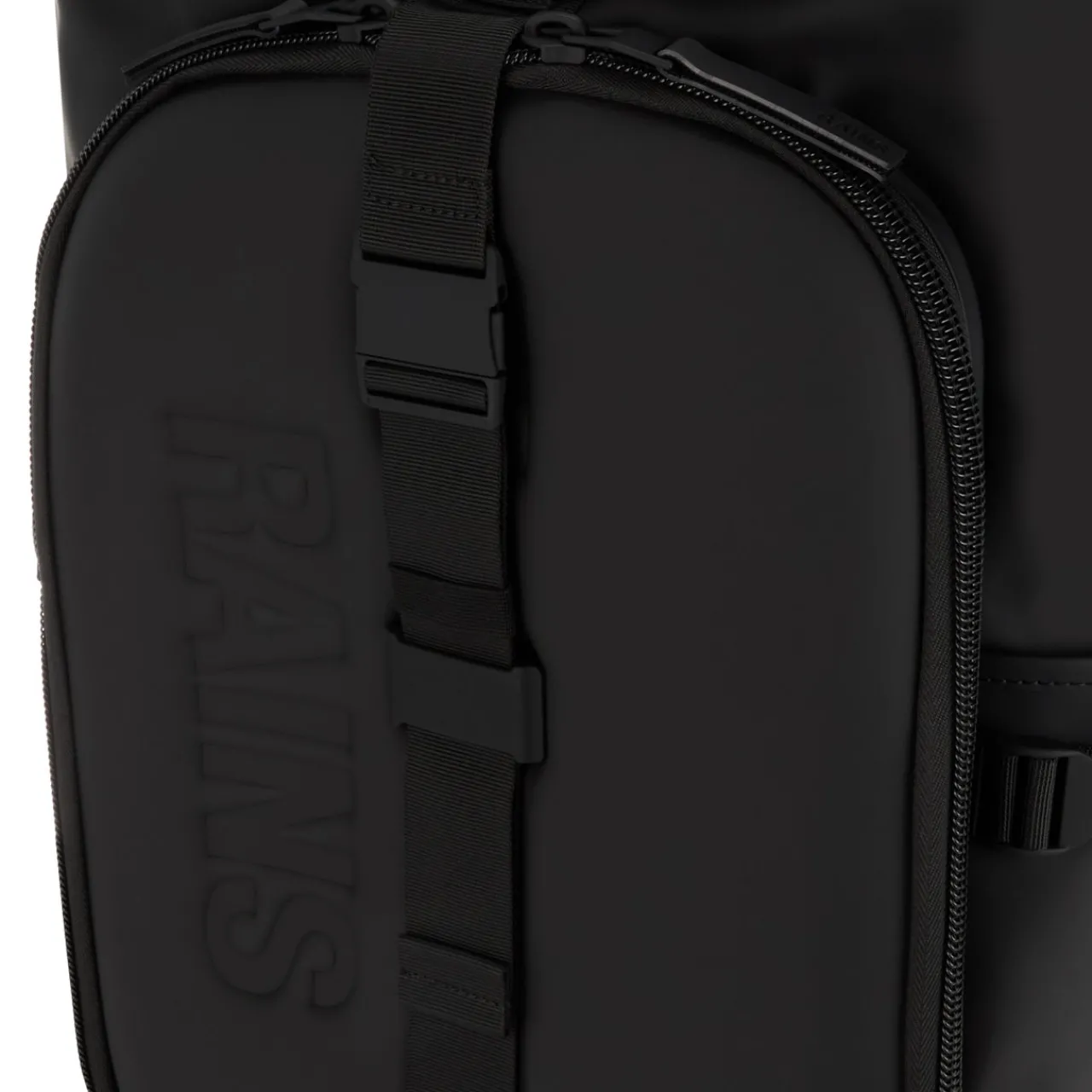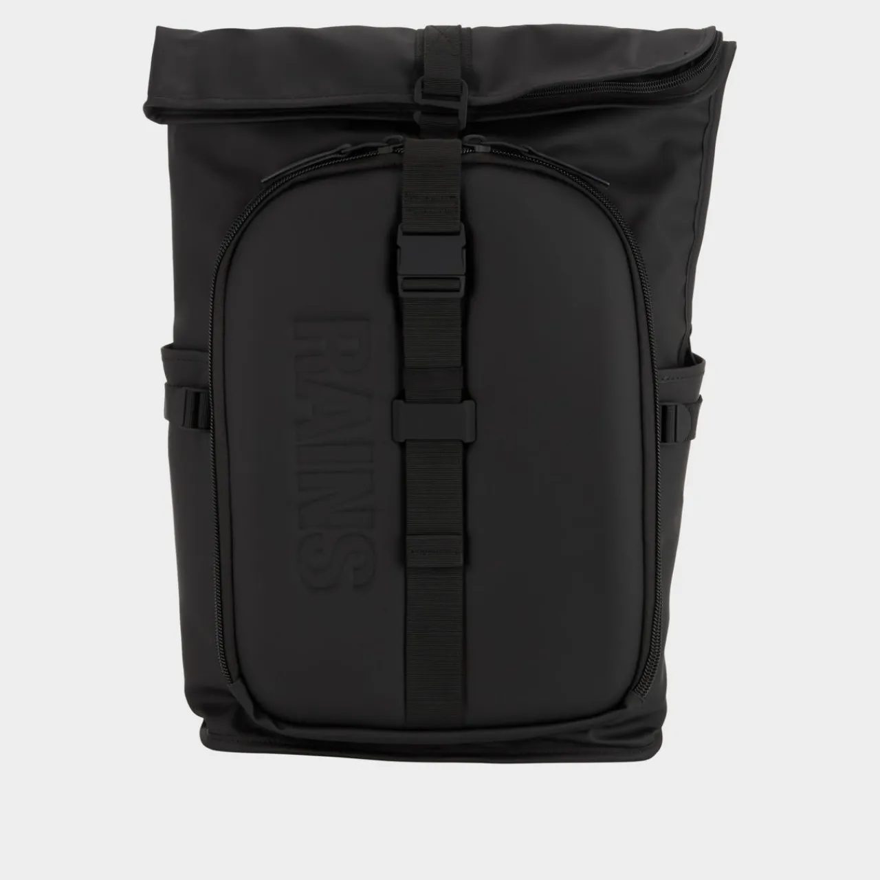 - Folded top with zip and buckle fastening, extra wide opening, moulded front pocket, waterproof, interior keyloop with snap hook, compression straps, padded adjustable backstraps, top carry handle, padded mesh back panel, logo details, durable finish
