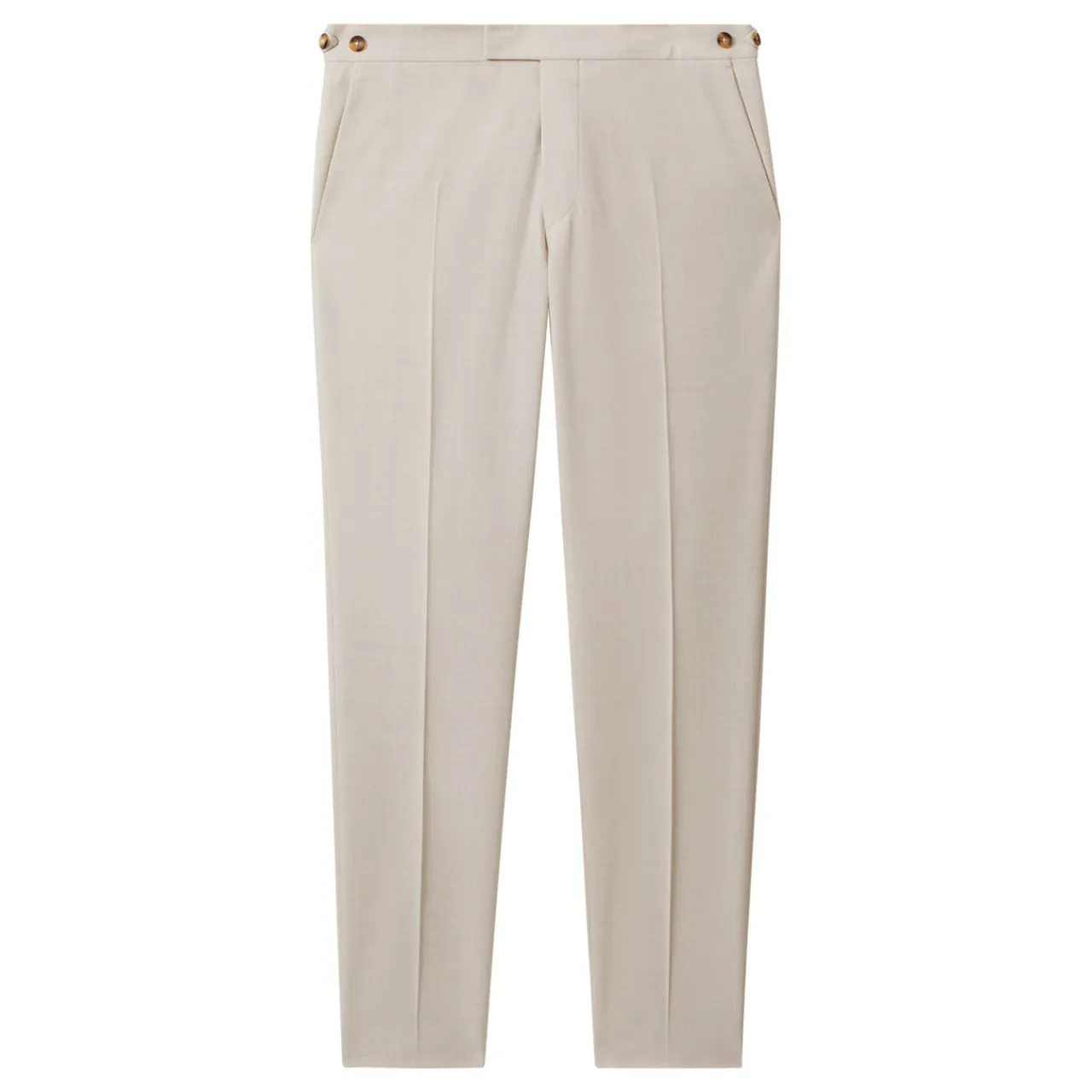 - Side adjusters, side pockets, front creases, concealed zip fastening, buttoned rear pockets
