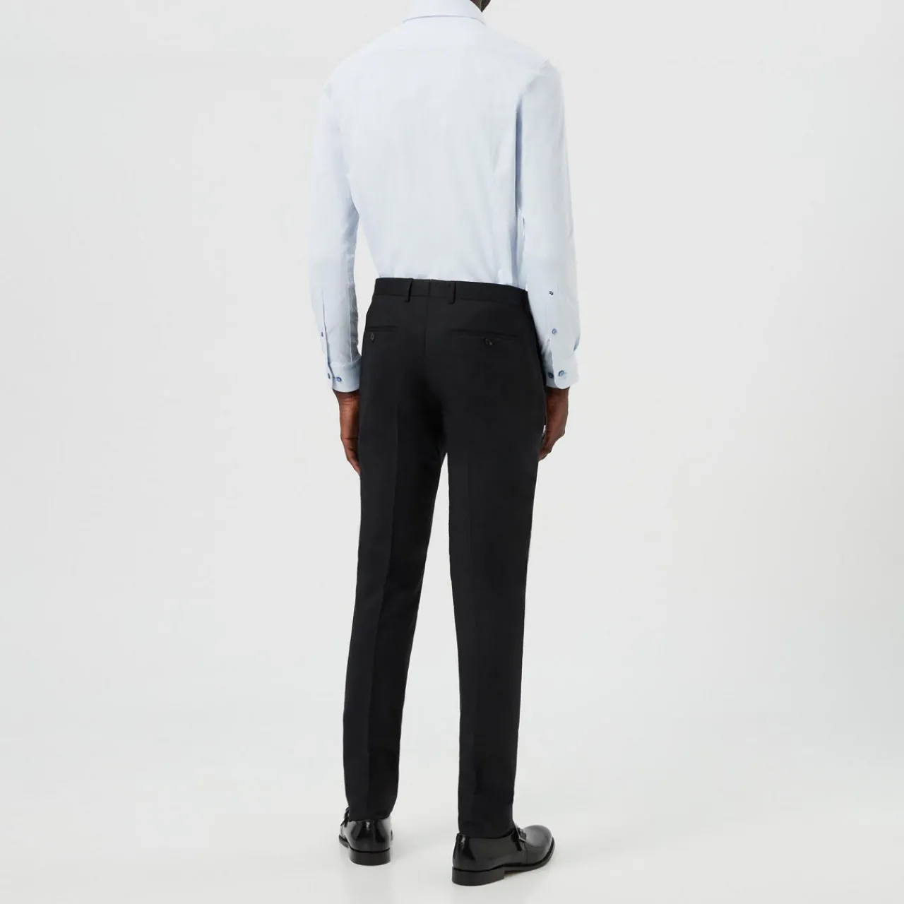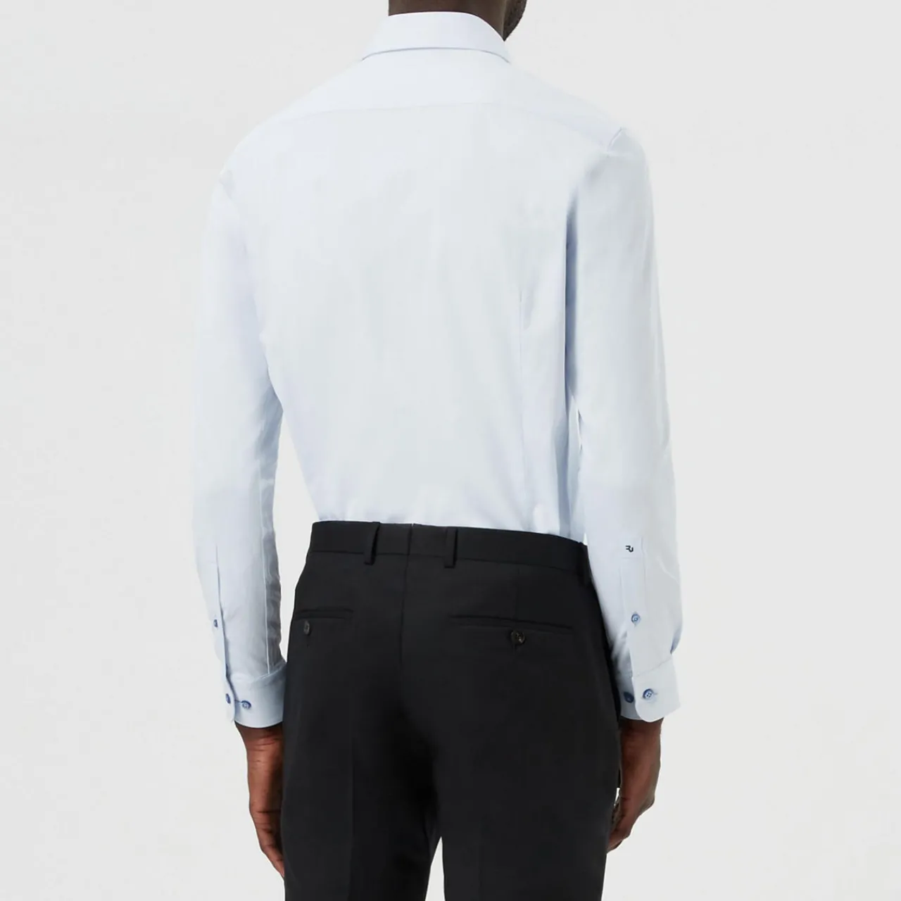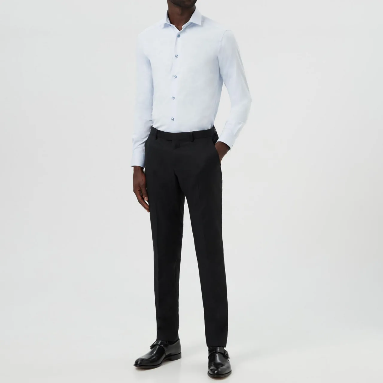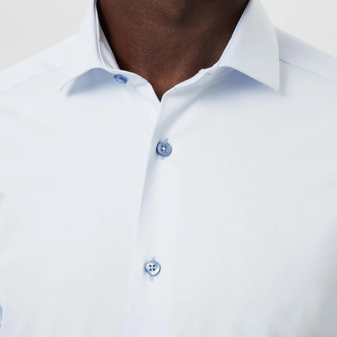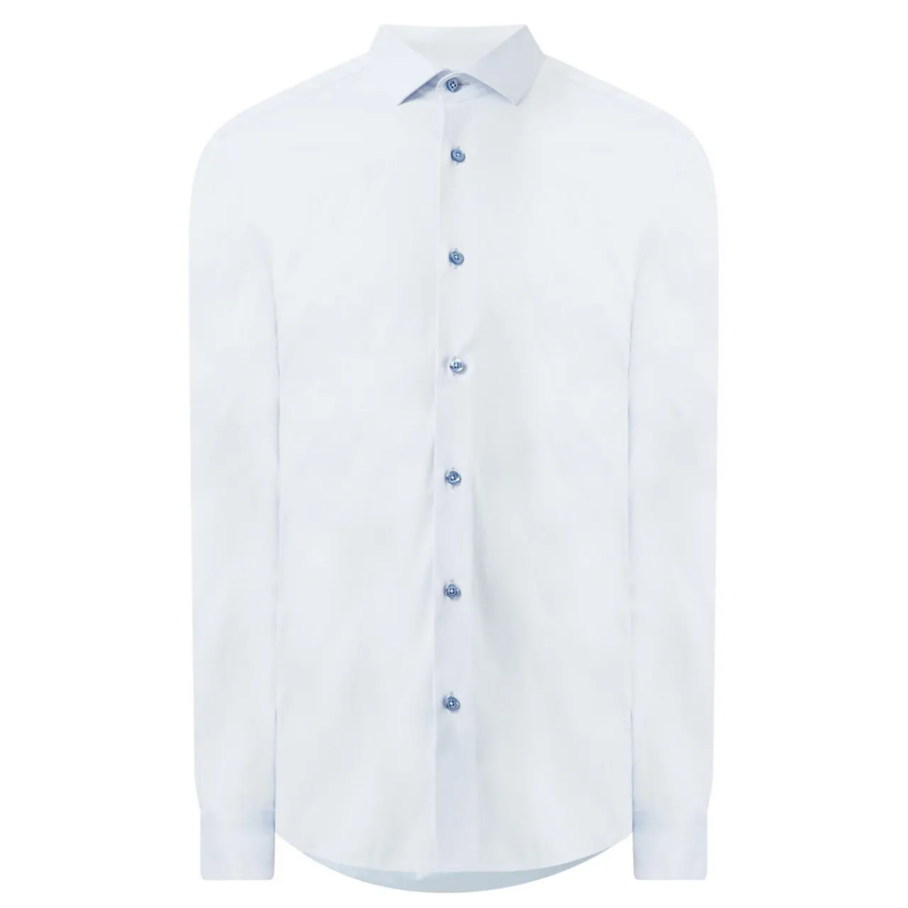 - Long sleeves, spread collar, slim fit, button-down style.