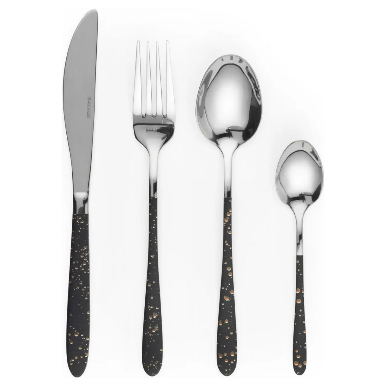 - Set includes: 4 x knife, 4 x fork, 4 x tablespoon and 4 x teaspoon. Material: stainless steel 18/0 with mirror polish and gold marble painted handles. Packaging: window box.