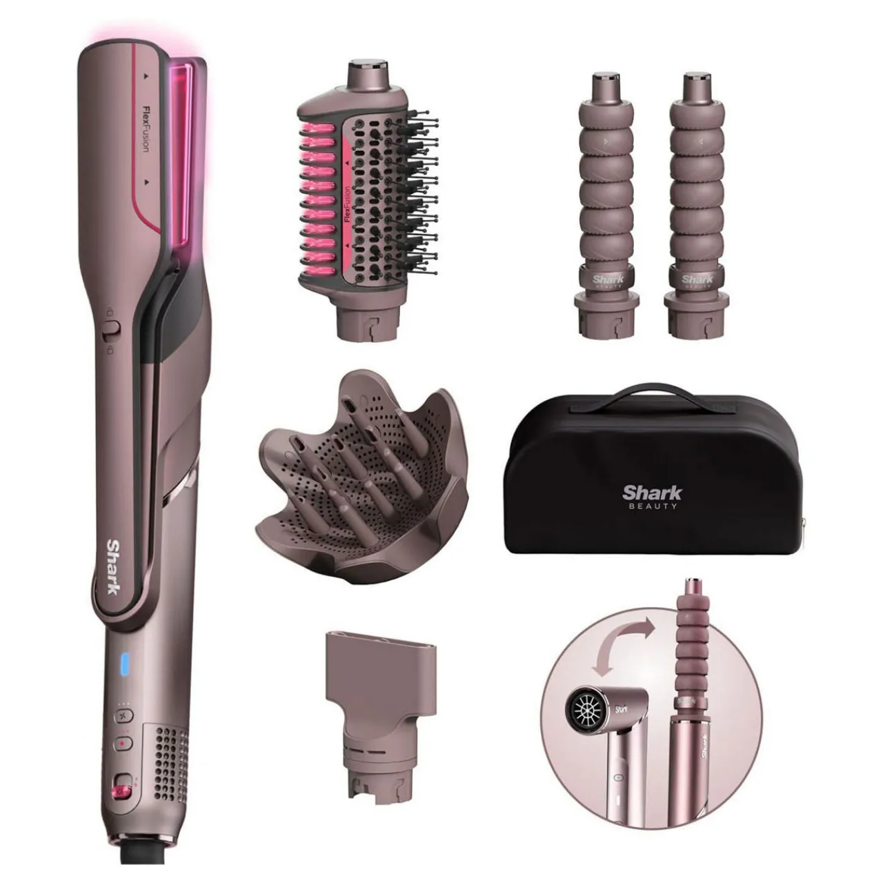 - Includes: Wet-or-Dry Fusion Straightener, Wet-or-Dry Fusion Brush, 32mm Auto-Wrap Curlers, Styling Concentrator, Curl-Defining Diffuser, Storage Case.