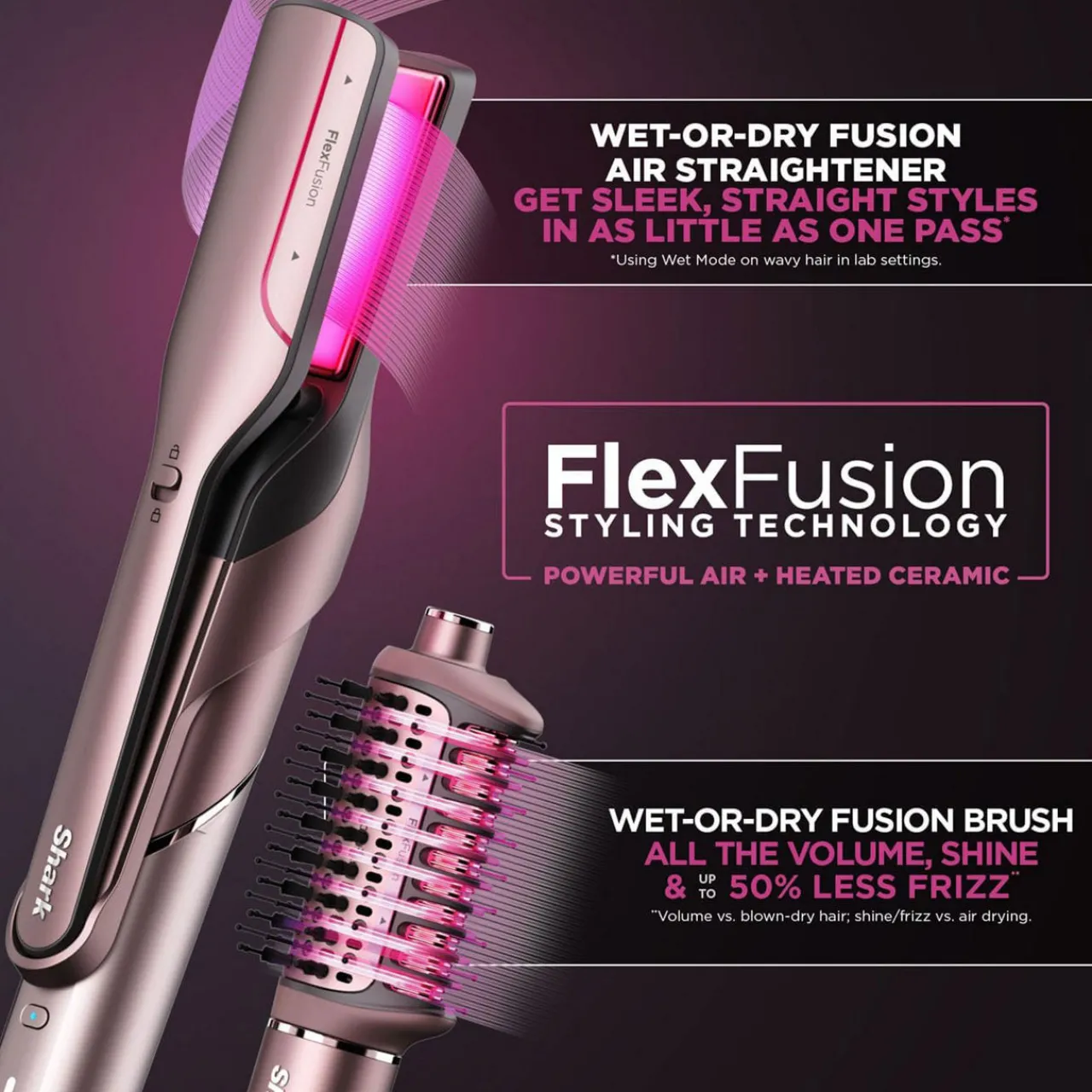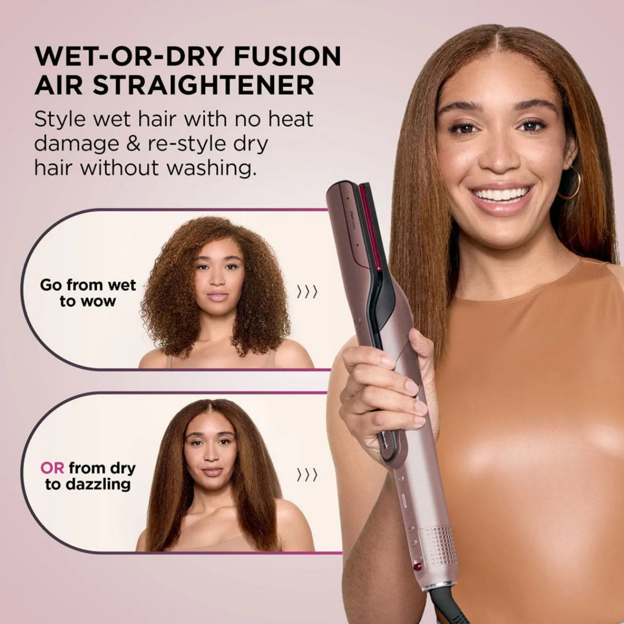 - Wet-or-Dry Fusion Hair Straightener:POWERFUL AIR + HEATED CERAMIC This straightening attachment dries and straightens at the same time with no heat damage*. Get sleek, straight styles in as little as one pass**. Perfect for wet or dry hair.