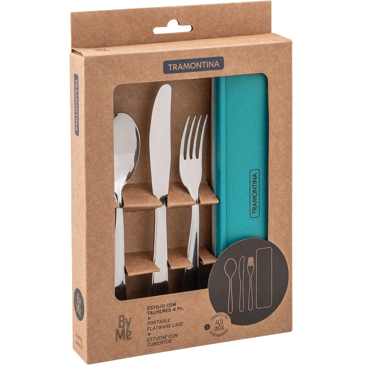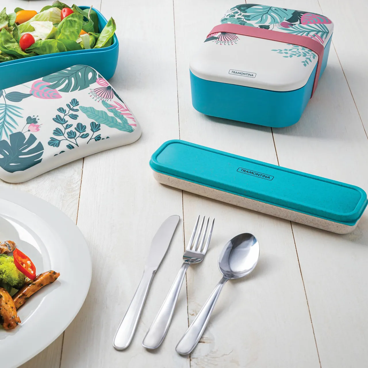 - Contains: 1x Stainless Steel Knife, 1x Stainless Steel Fork, 1x Stainless Steel Spoon, and 1x Wheat Fibre Travel Case