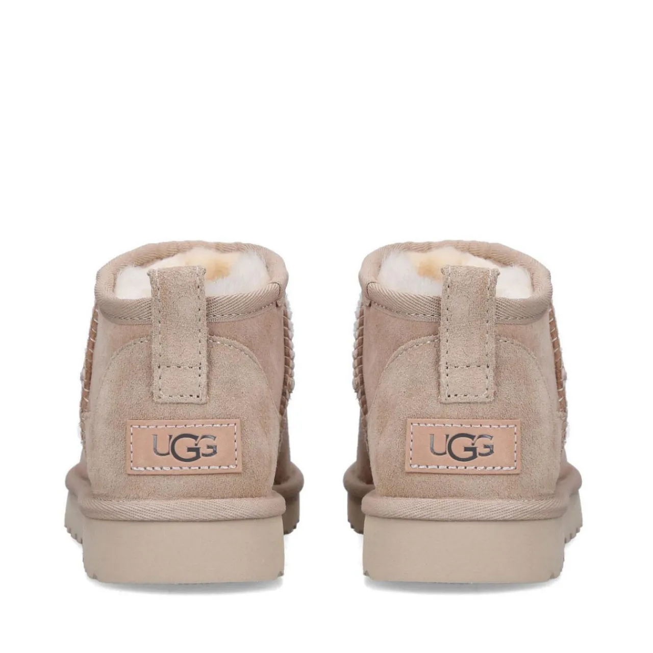 - Flat sole, short shaft, shearling lined, flexible sole, pull on style, round toe, branded