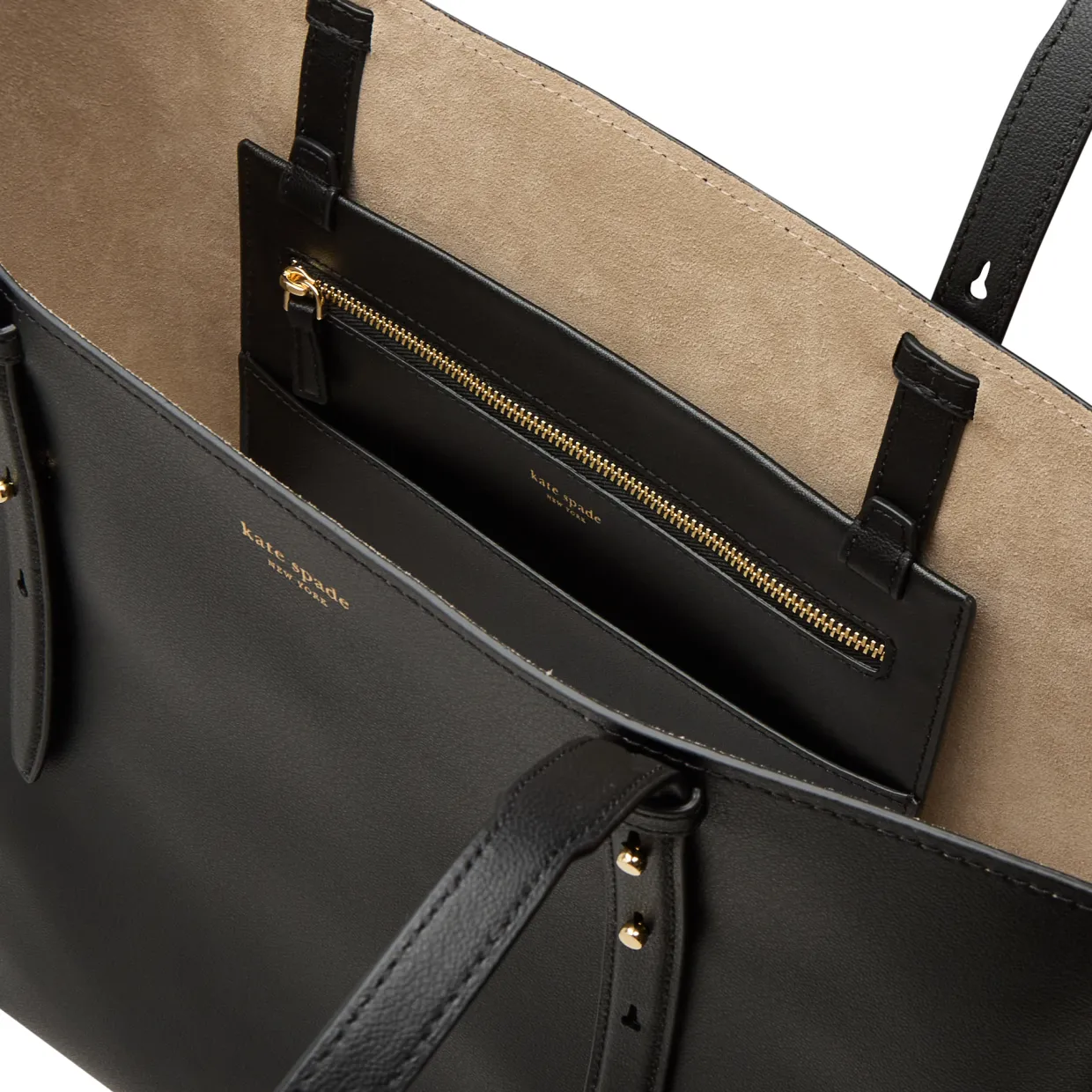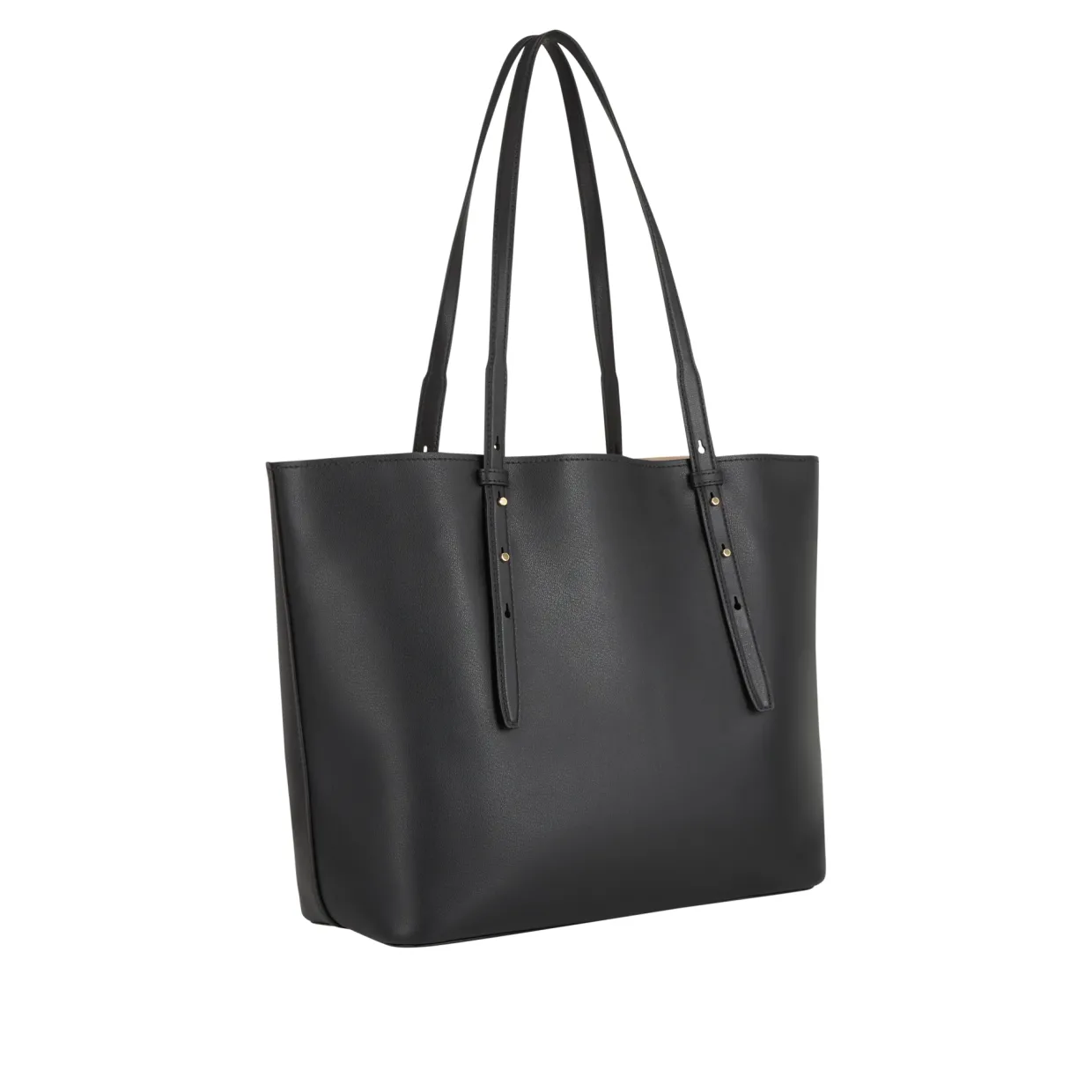 - Adjustable top carry handles, open top, boxy silhouette, gold-tone hardware, suede & twill lining, grained finish, foil logo detail