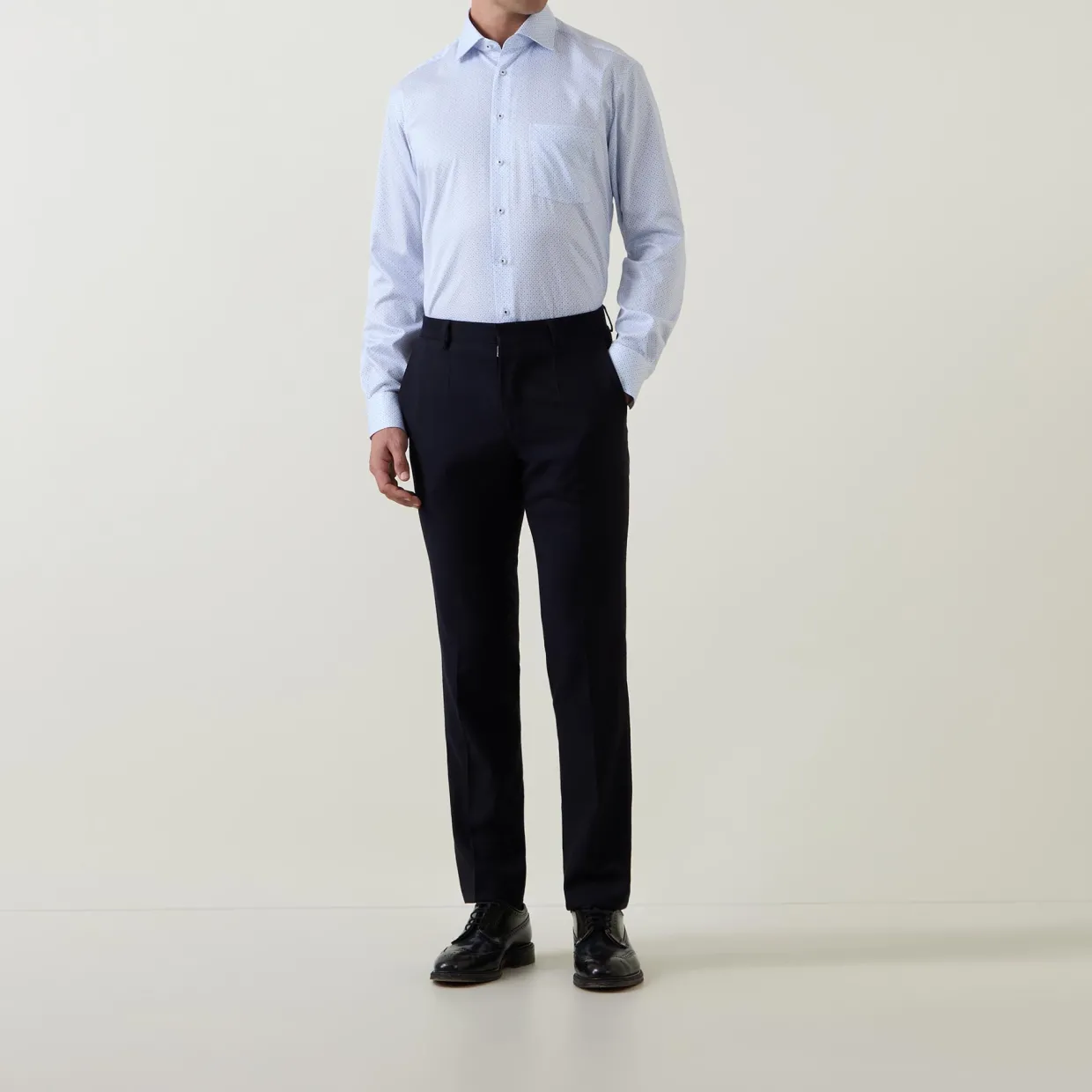 - Modern fit, slightly tailored
