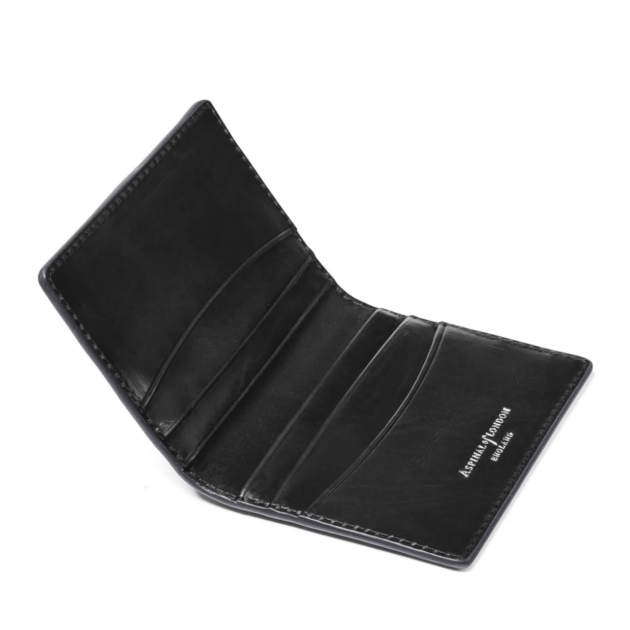 - Fold-over design, six card slots, lined, woven leather design, lined, slimline, logo lettering