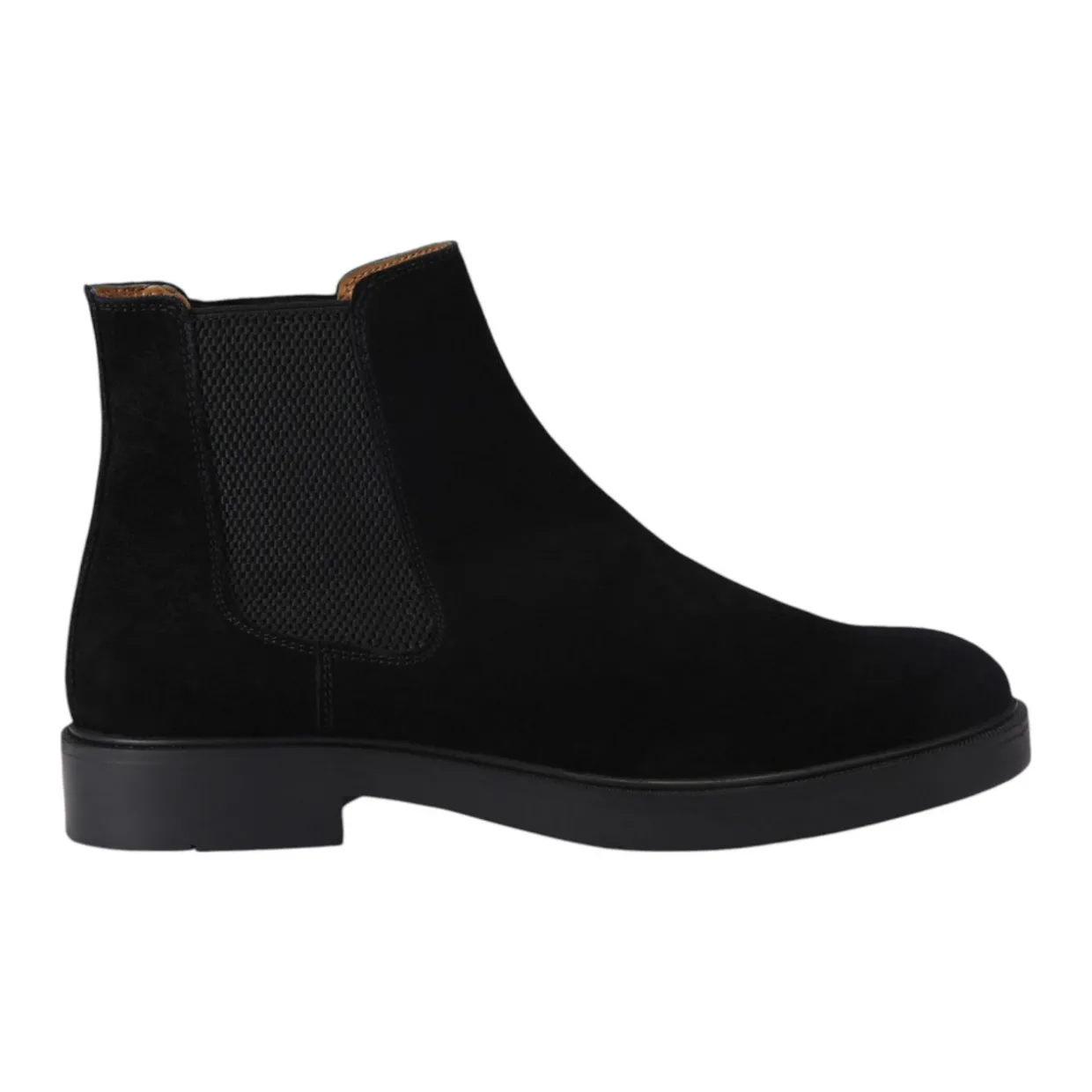 - Suede upper, slip-on style, two elasticated side panels, low block heel