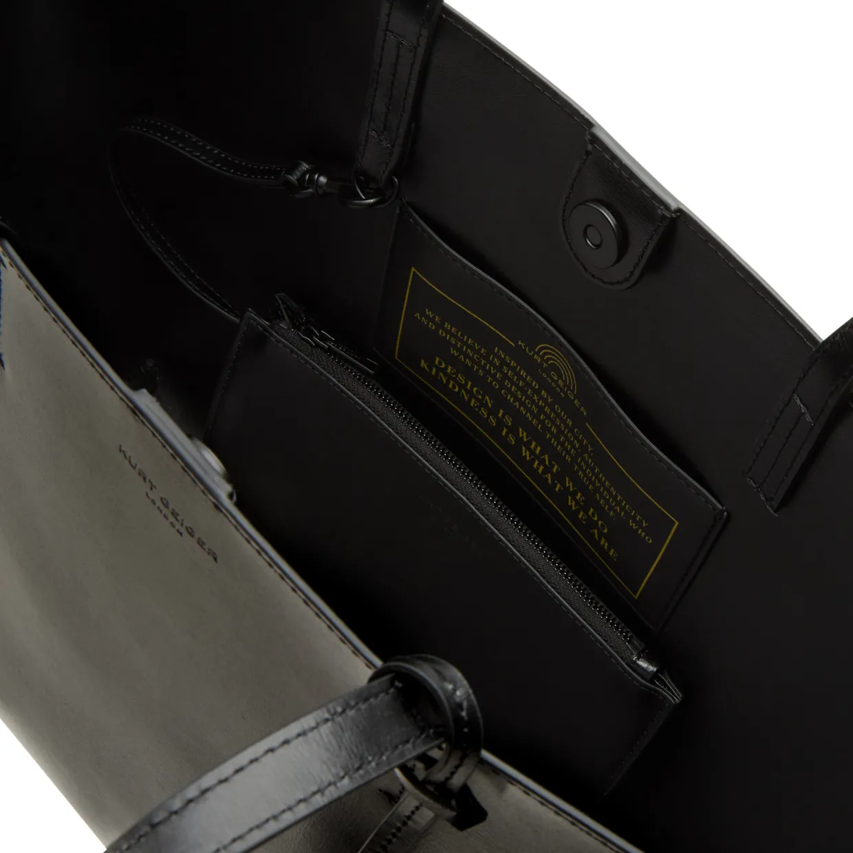 - Interior: One main compartment, one slip pocket, one zipped detachable pouch