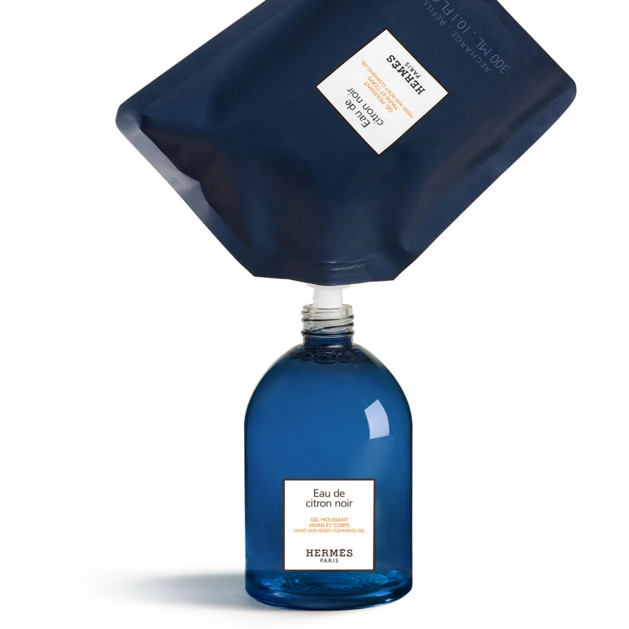 The bottle is made of recyclable glass. The Eau de citron noir hair and body shower gel refill can be used to replenish the 300ml bottle.