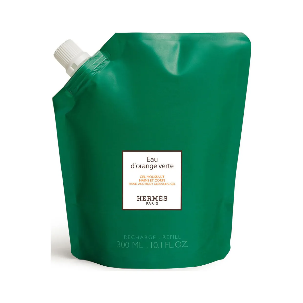 The fully recyclable refill can be used to replenish the glass Eau d’orange verte cleansing gel bottle of the same size.