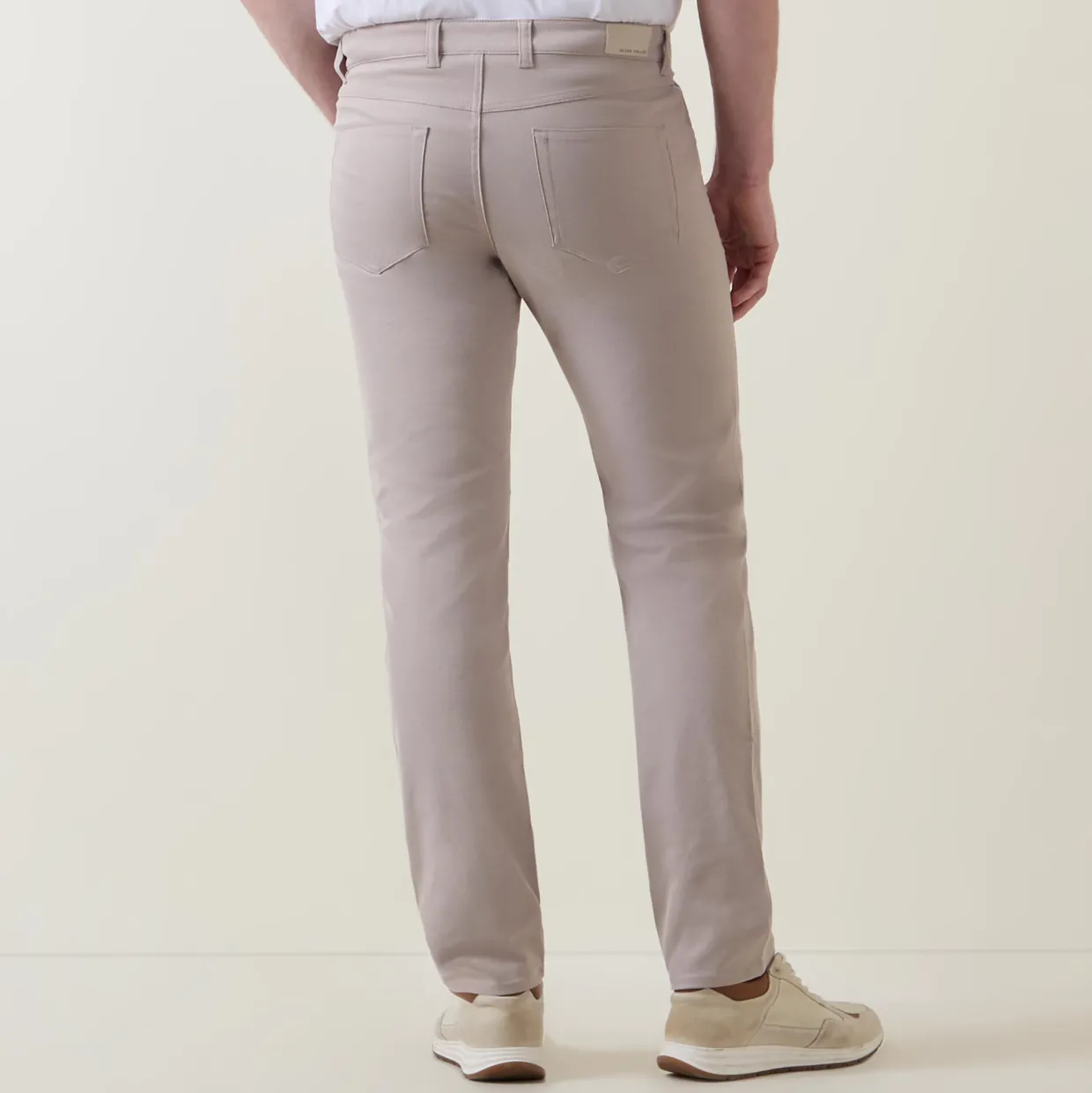 - Button and fly zip fastening, belt loops, five-pocket style, logo badge at rear