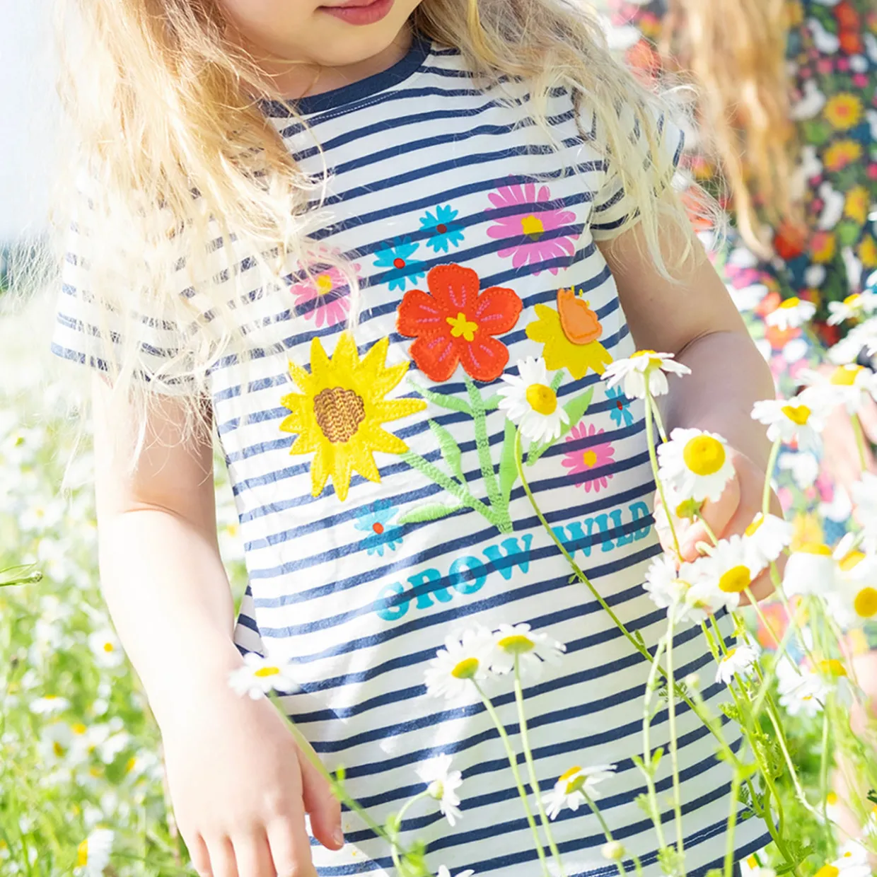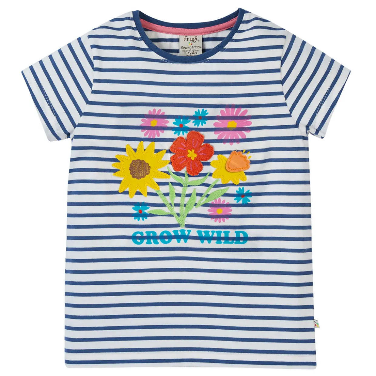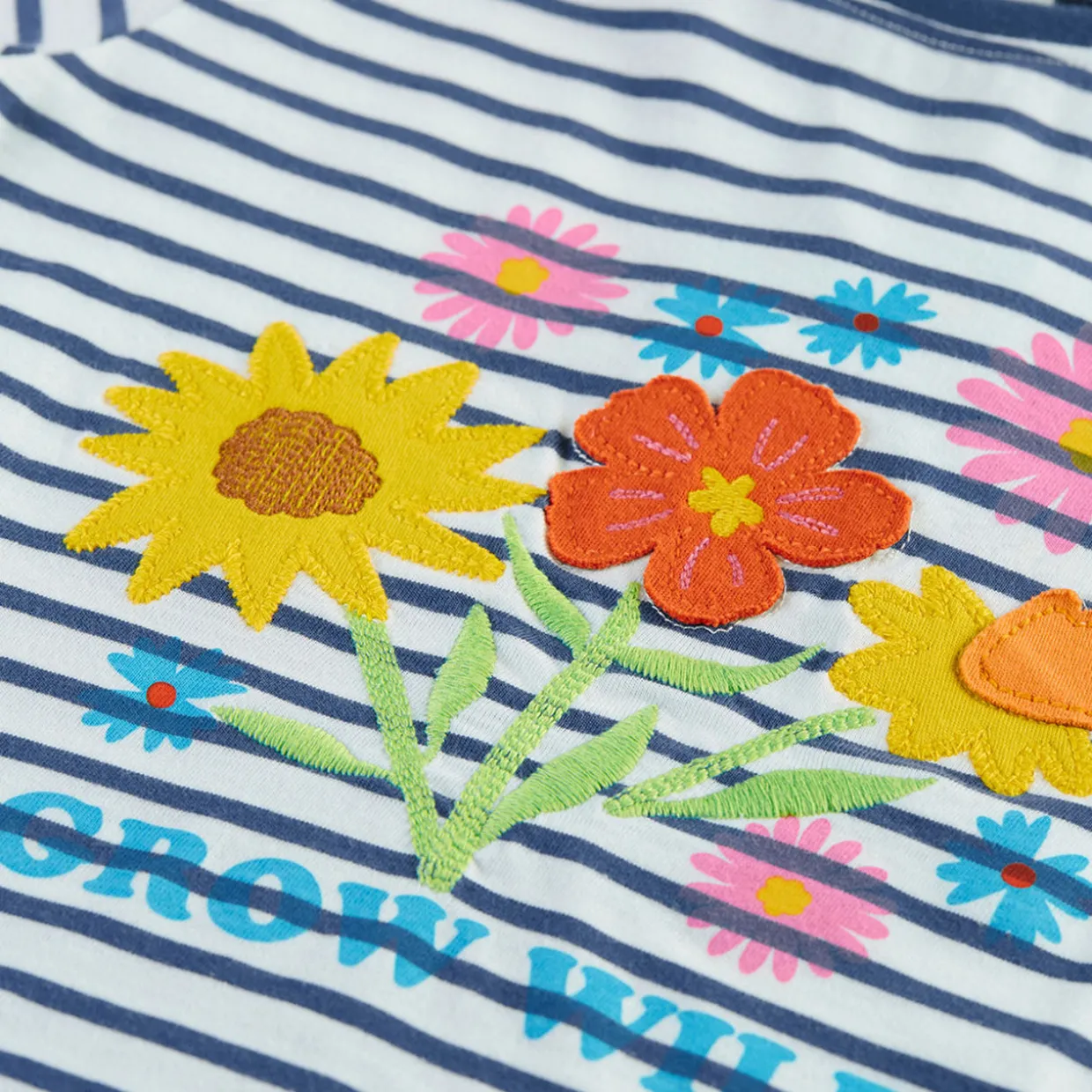 - Floral appliqué details, striped pattern, round neckline, short sleeves, soft and breathable cotton finish, stretch-fused ribbed neckband, brand logo detail