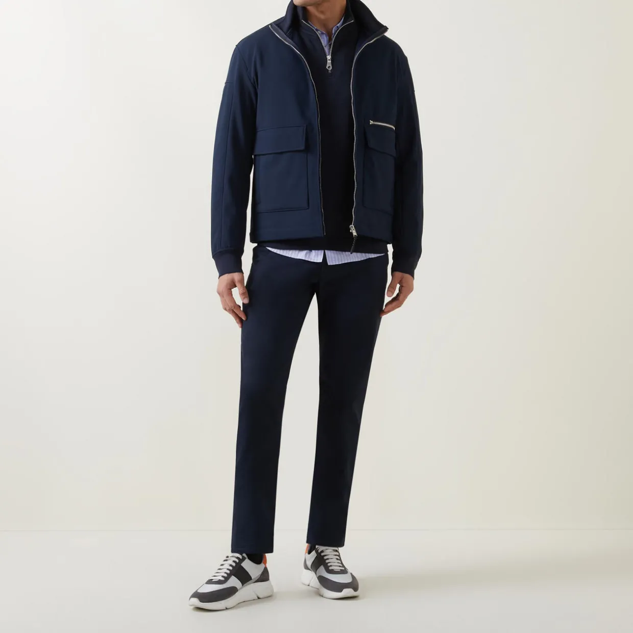 - Zip-fly and button fastening, belt loops, four-pocket design, tonal stitching, logo patch, smooth fabric