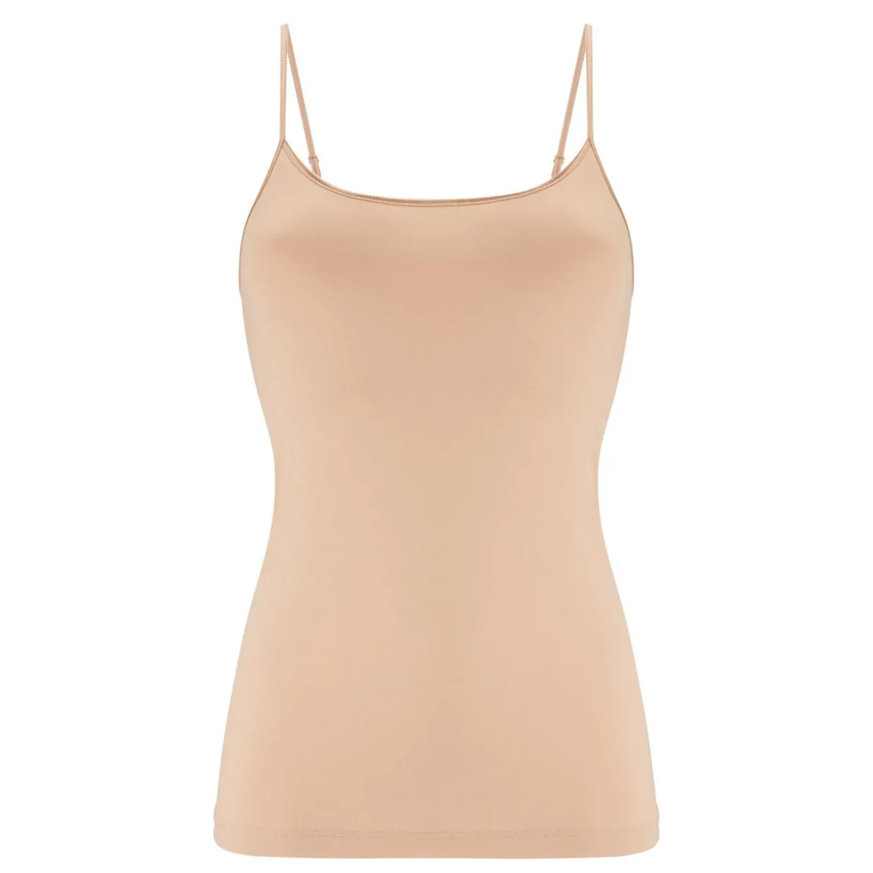 - Sleeveless, adjustable straps, slim fit, flat seams