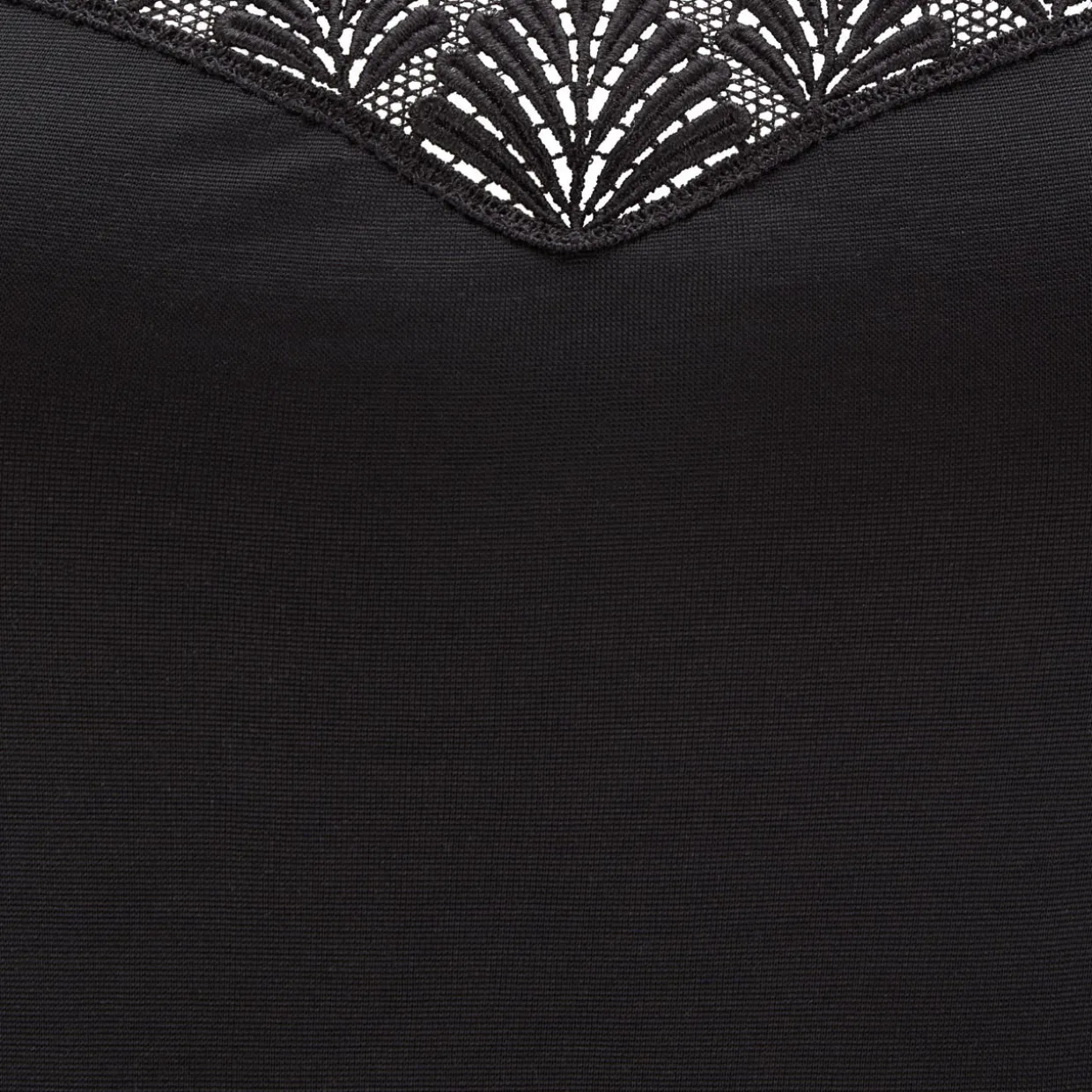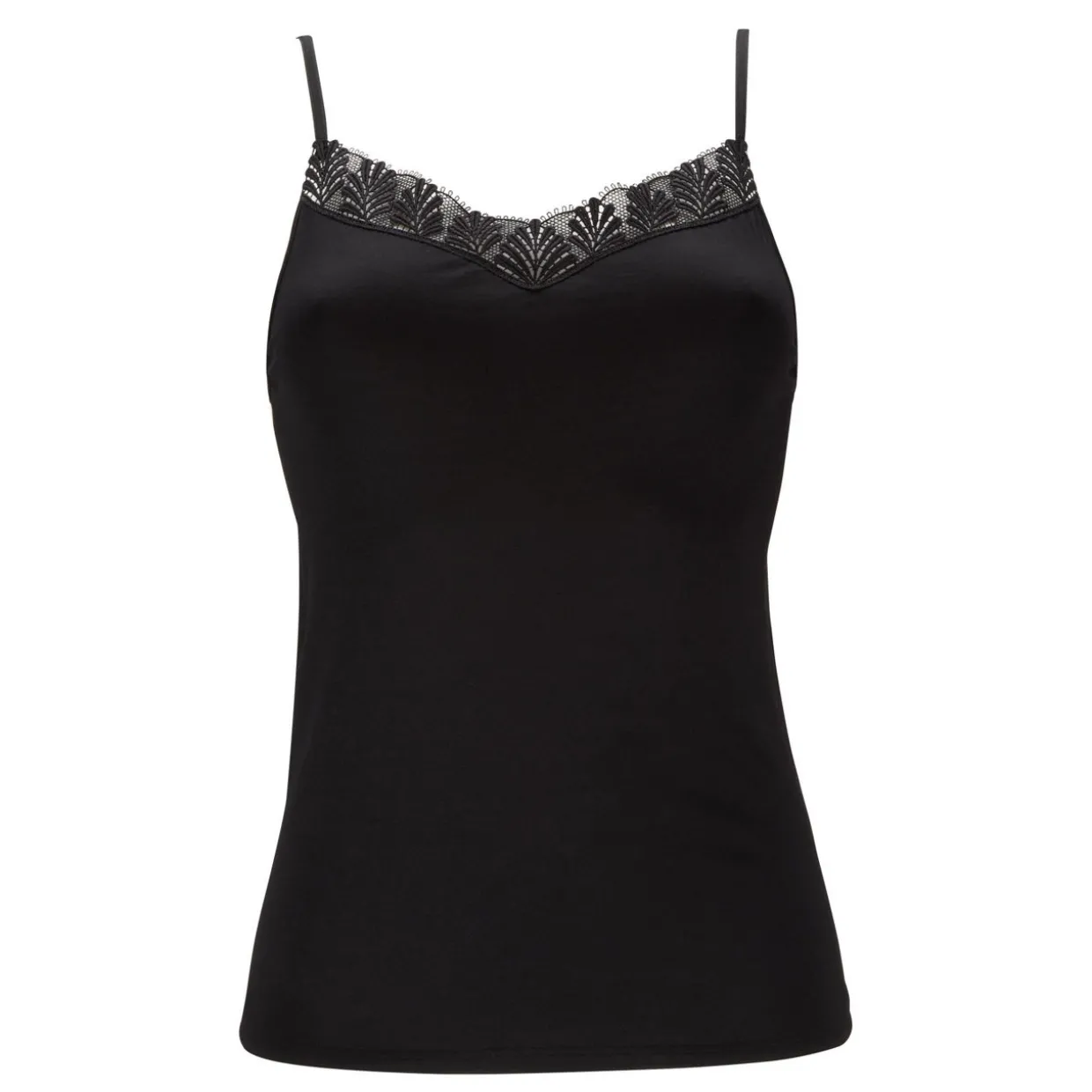 - Spaghetti straps, lace trimming, tonal stitching, straight hemline, smooth seamless finish