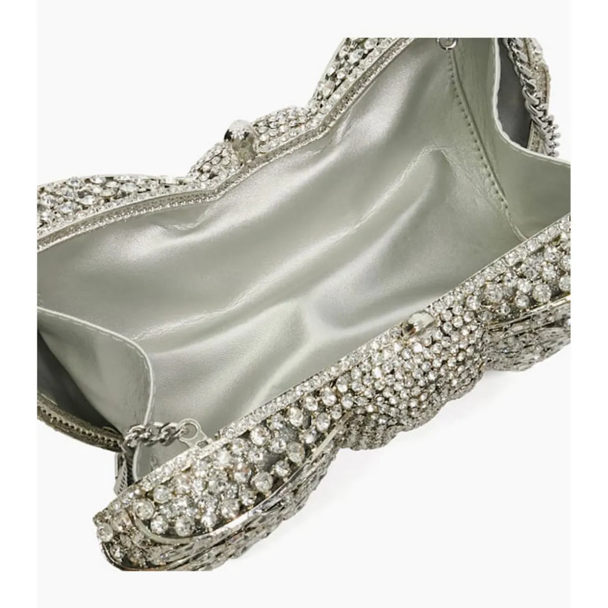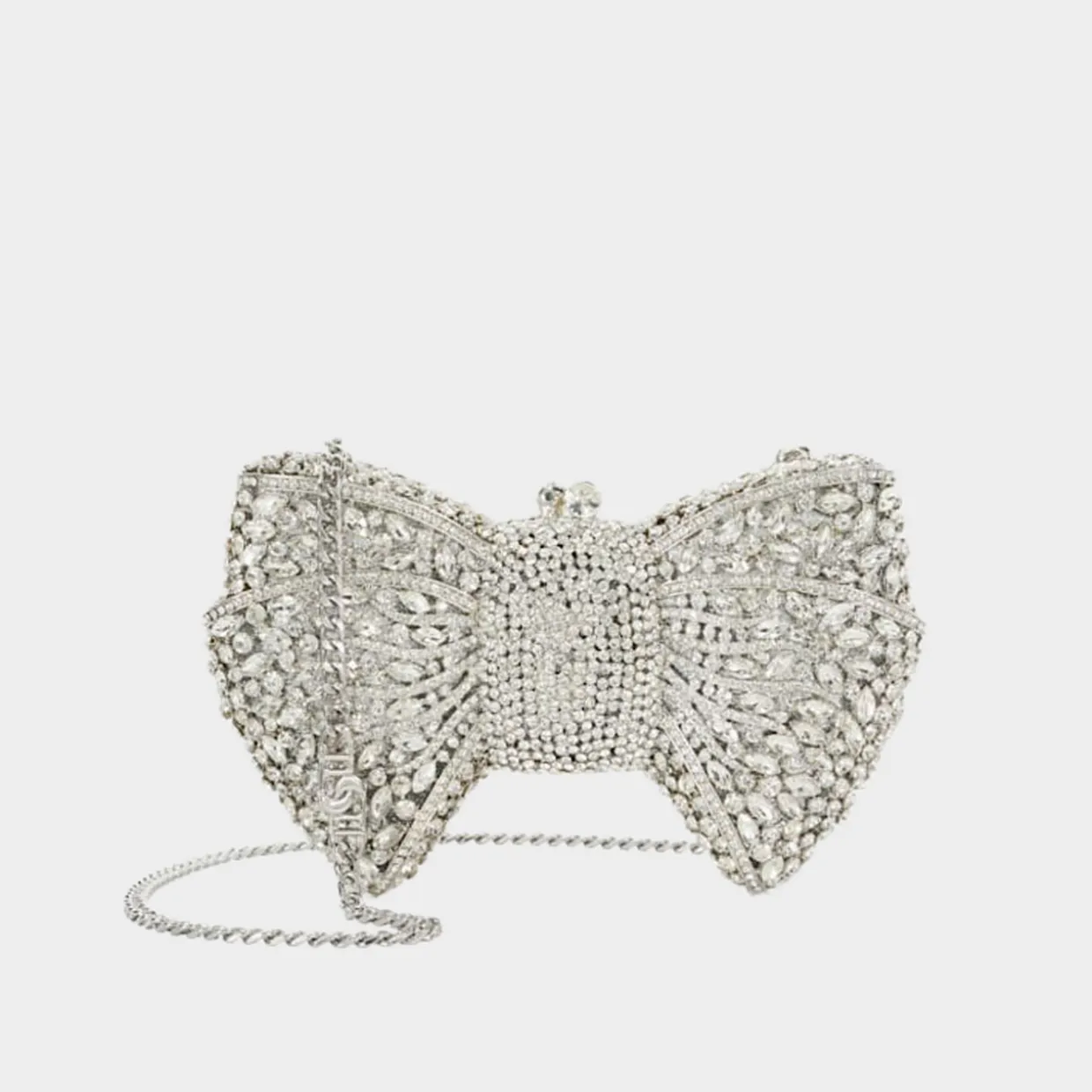 - Bow shape, adorned with eye-catching diamante and cut-glass details, secure clasp fastening