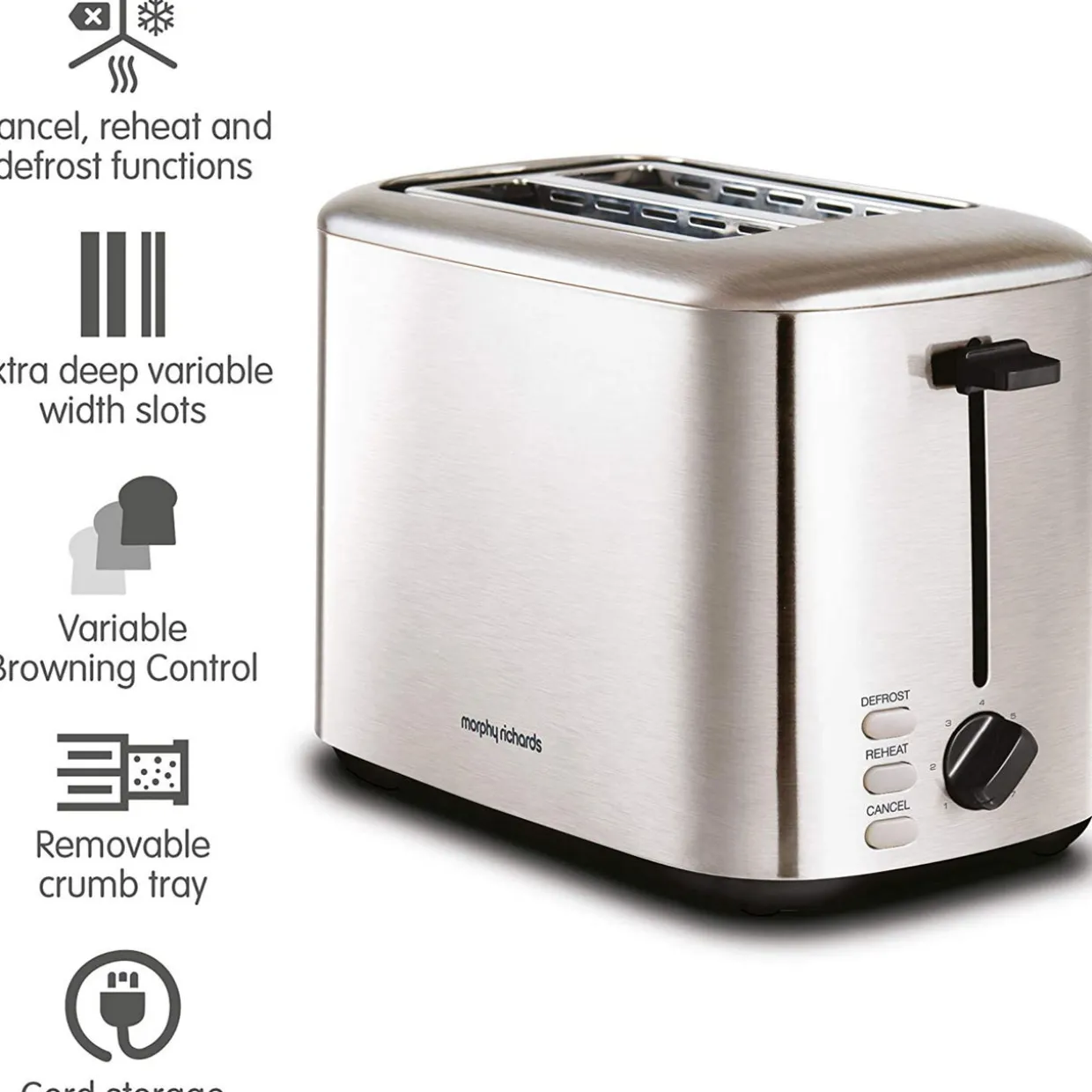 Easy to operate with variable browning control ensuring you get perfect toast, to your taste, every time. Defrost and reheat settings mean your new toaster will cater for every occasion, the removable crumb tray ensures that cleaning up is easy and cord storage allows you to neatly store your toaster away.