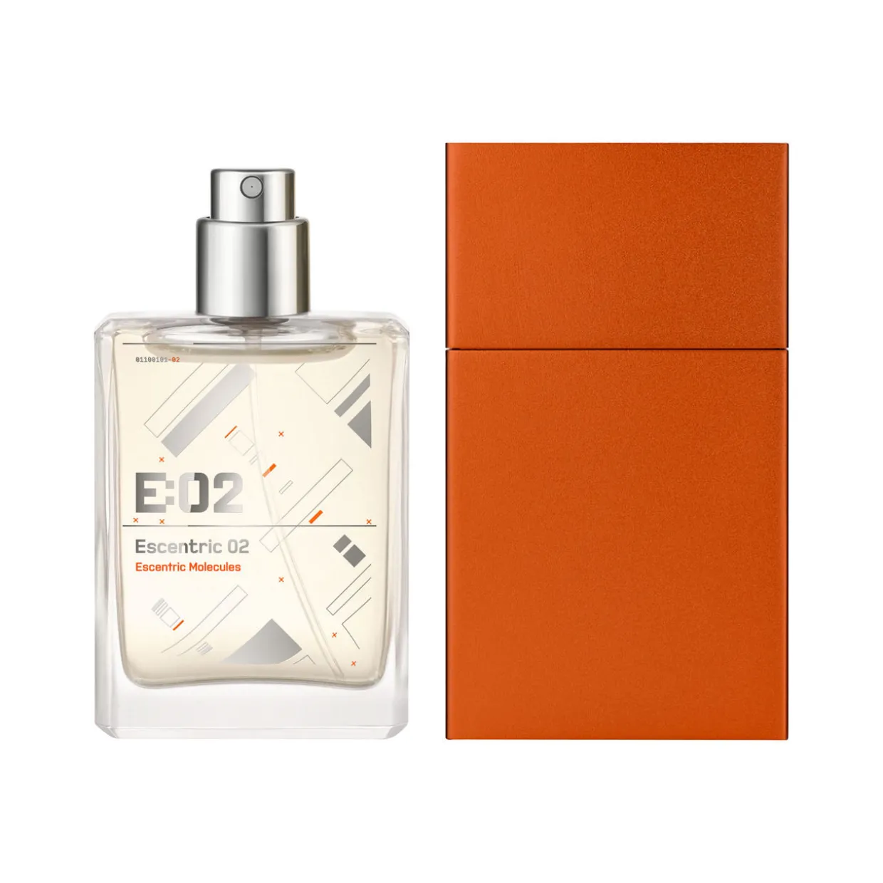 Escentric 02 uses an unparalleled concentration of ambroxan, in combination with vetiver and muscone, a particularly gorgeous nature-identical musk. Orris, elderflower extract and hedione add to the instant effervescence of the topnote. It’s a clear, clean scent, but it dries down to something warm, sexy and elusive.